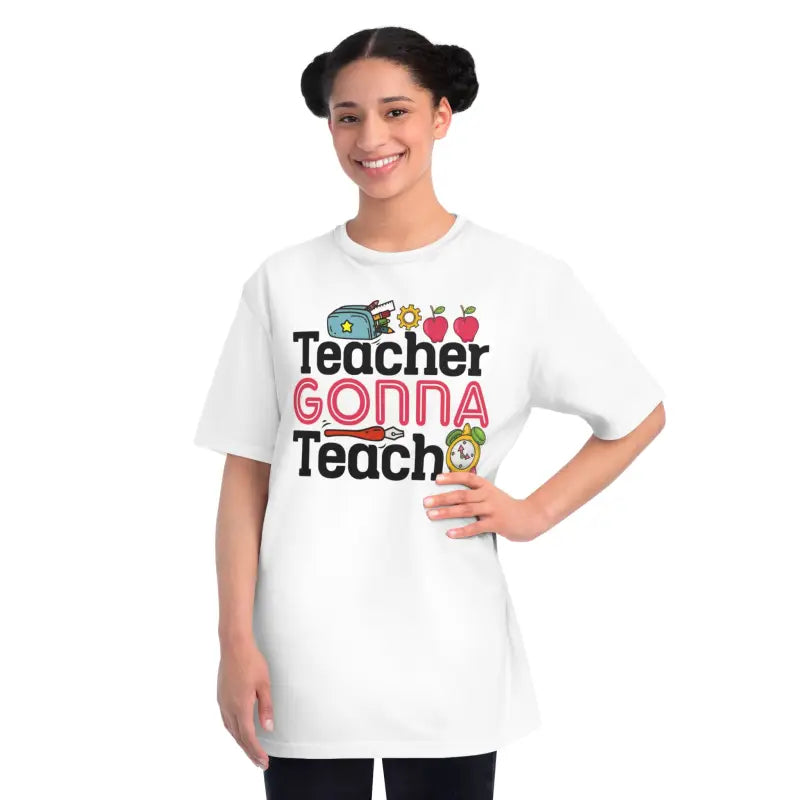 Make every day a statement. Grab this organic unisex classic t shirt now and wear your teacher pride loud and proud—inspire your crew, stand out in style, and know that teacher gonna teach, no matter what!