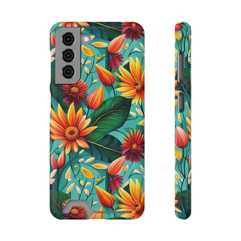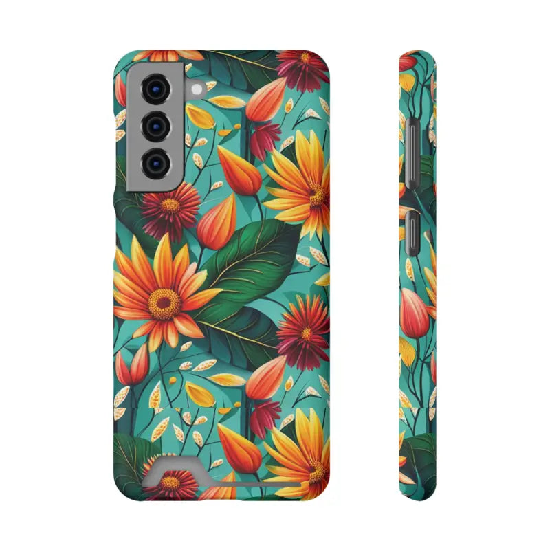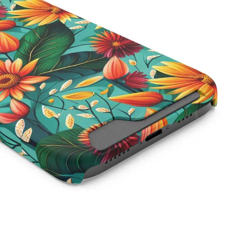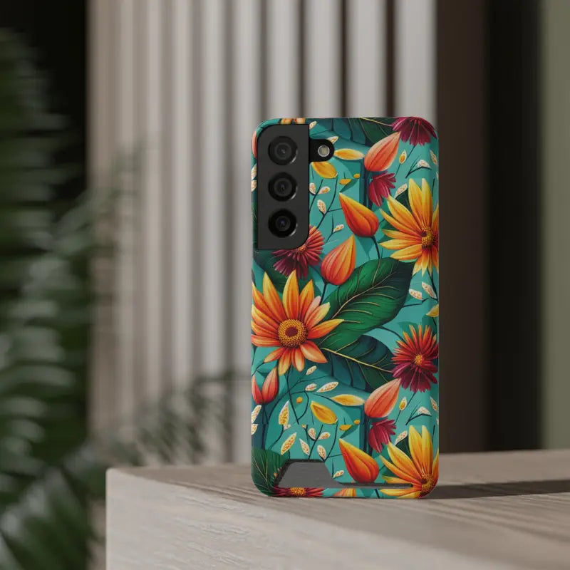 Phone Case with Vibrant Flowers and Card Holder - DipaliZ