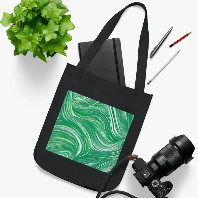 Ready to make eco-friendly style the boldest part of your day? This vibrant canvas tote bag with an energetic wavy pattern on green turns every outing into a show-stopper, solving your carryall needs with flair and sustainable charm.