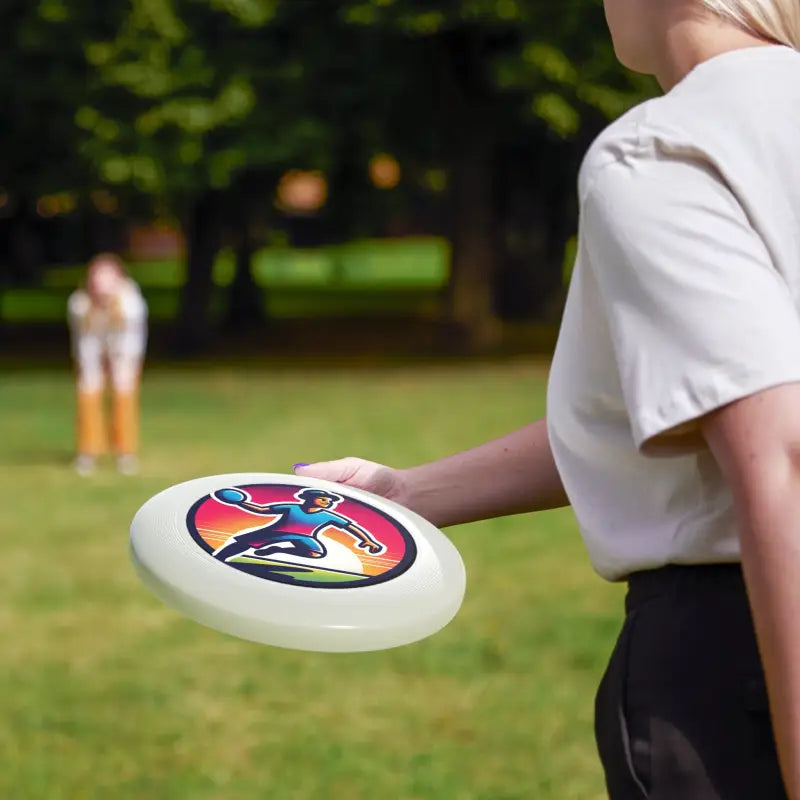 A boy with Frisbee, Wham-O Frisbee : Silhouette - Ultimate Outdoor Fun!. The iconic Wham-O frisbee is here and it awaits your touch. Thanks to its advanced design, you can count on Wham-O's excellent performance under any weather conditions, while its floating ability makes the perfect choice for serious Ultimate Frisbee action or casual fun. Available in black, white, green, blue, or red colors.