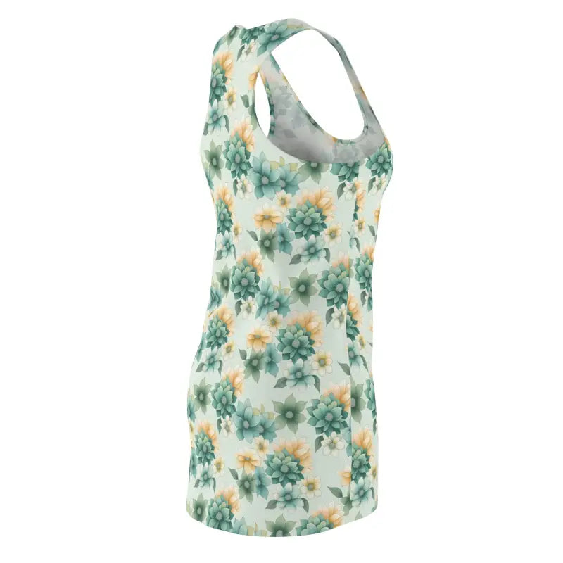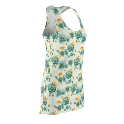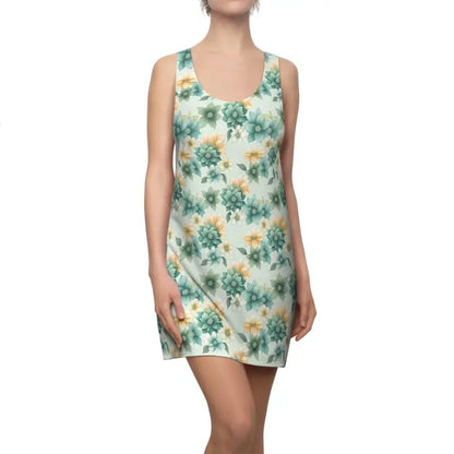 Racerback Dress Yellow Flowers Teal Print Bold Style DipaliZ