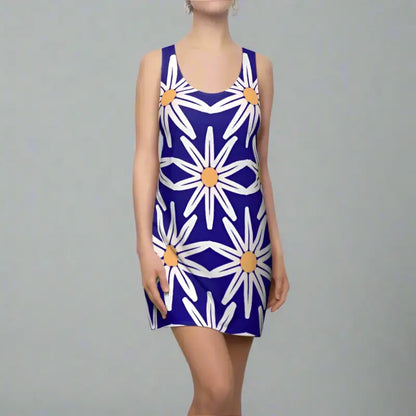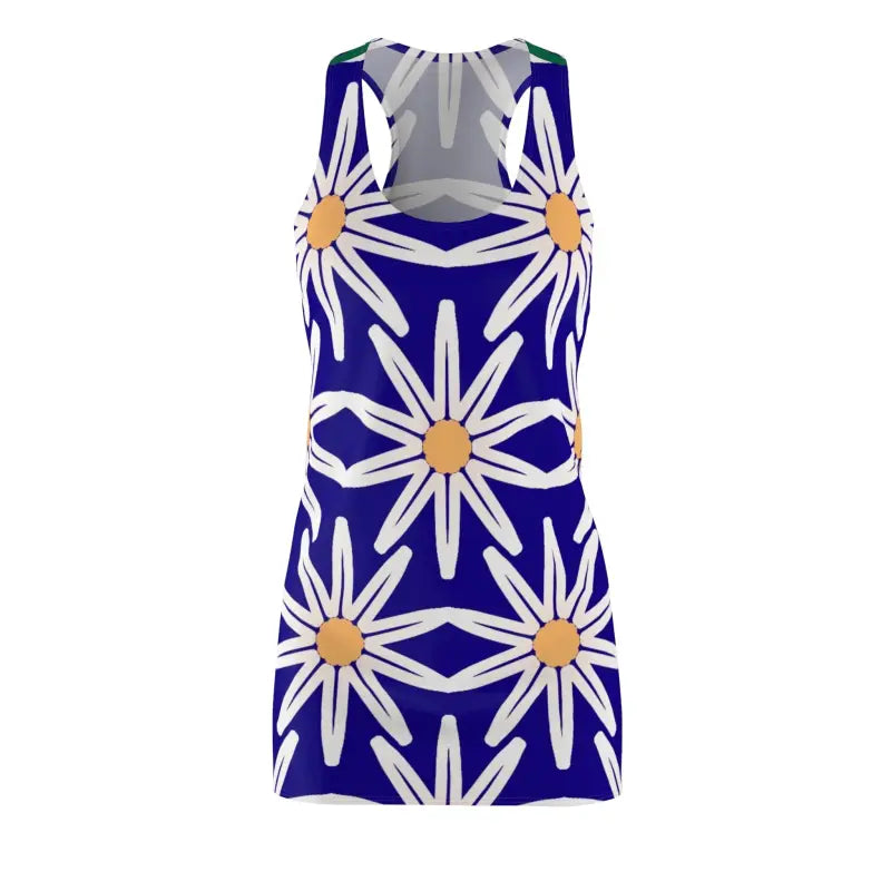 Take center stage with the Bloom in White Flower Power Racerback Dress, a vibrant masterpiece that promises to inject a dose of high fashion into your wardrobe. This standout piece marries the simplicity of a racerback design with the audacious charm of a white flower pattern cascading over an electrifying blue dress. Crafted by the renowned DipaliZ Brand, this piece effortlessly blends contemporary style with lasting comfort, making it a must-have for anyone eager to make a bold style statement. Whether you're hitting the town or enjoying a casual day out, this dress ensures you do so in style!