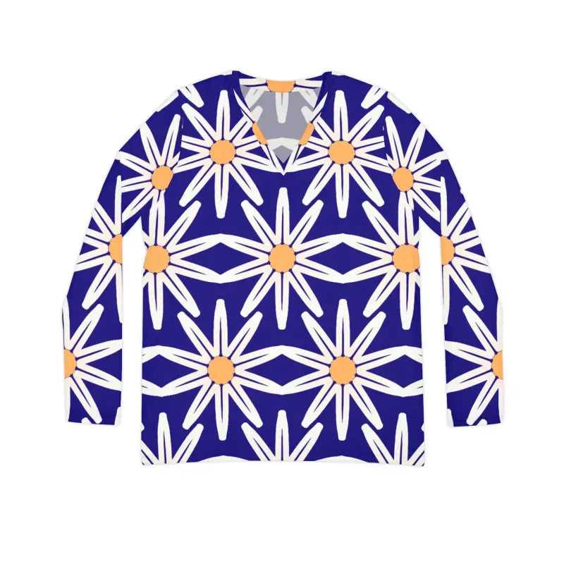 Long Sleeve V Neck White Flower Pattern Chic Top - DipaliZ