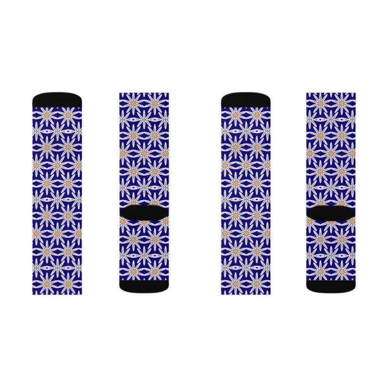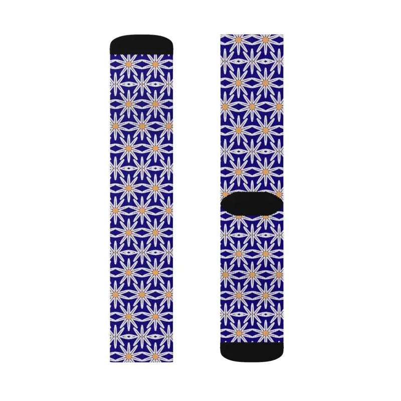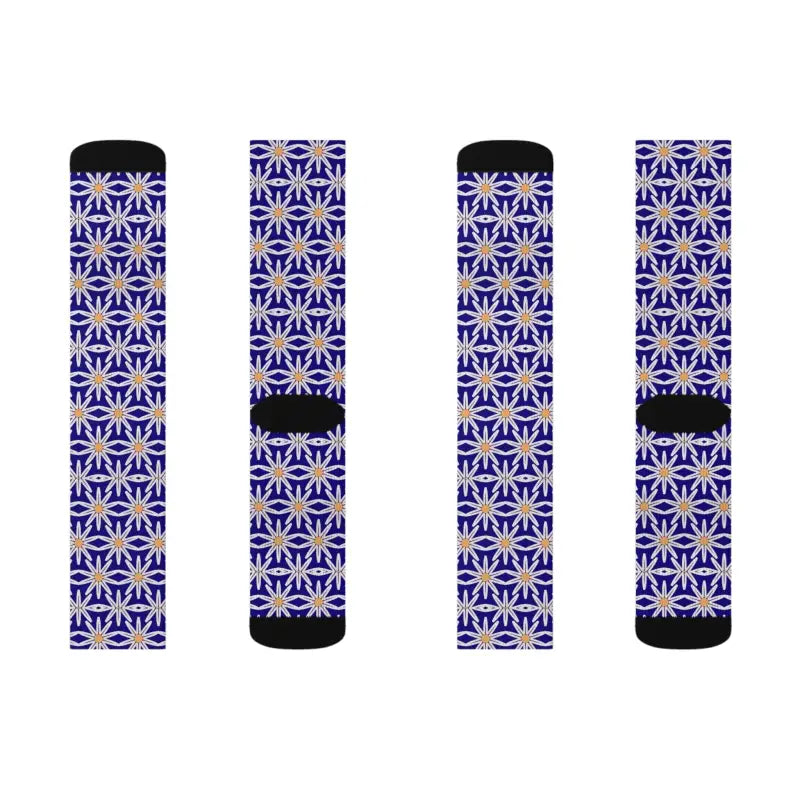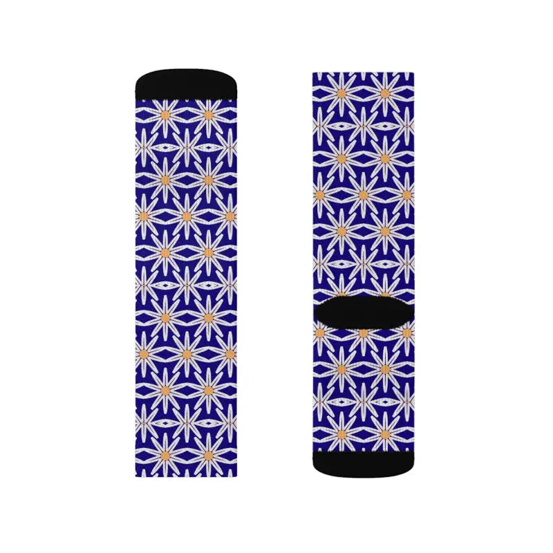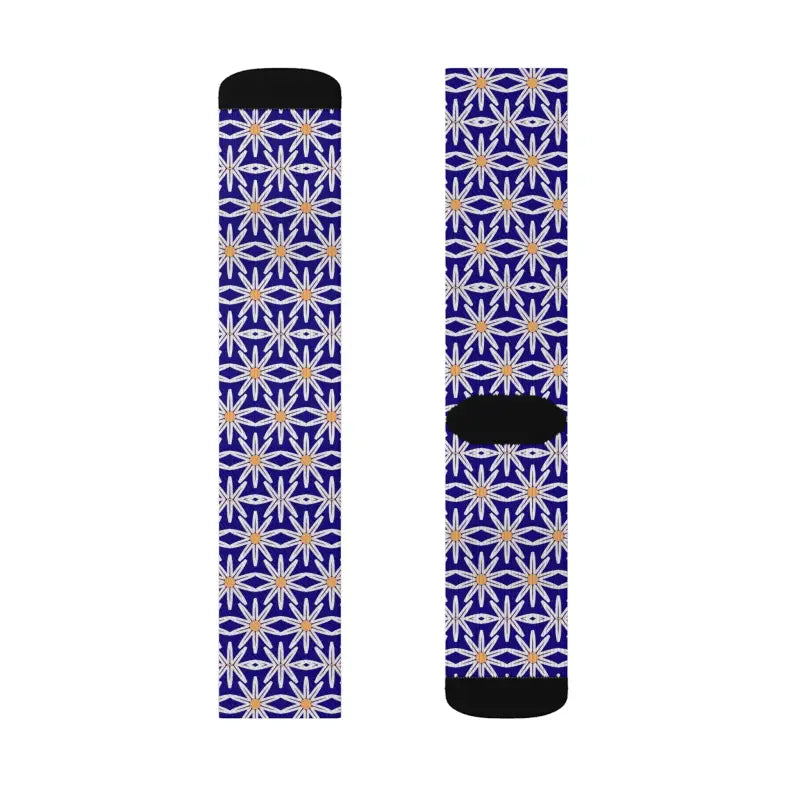 Electric Blue Sublimation Socks White Flowers Bold Style - DipaliZ