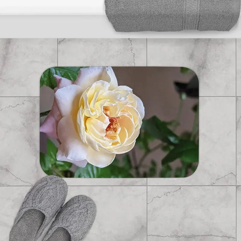 White Rose, Bath Mat. Beautiful mat for the most private room in one's house. This bath mat is as practical as it is stylish - the anti-slip backing keeps the bath mat firmly in place and reduces the risk of slipping.