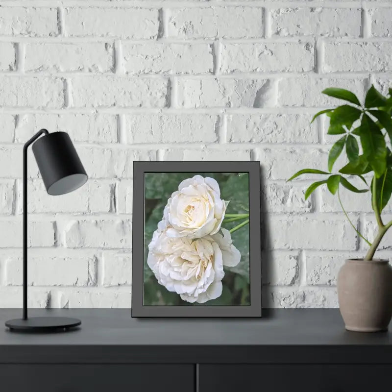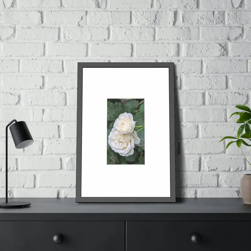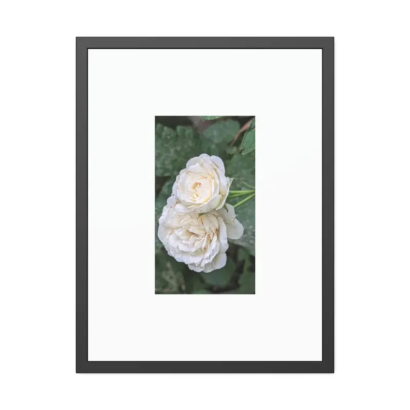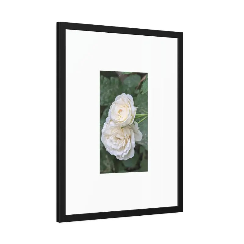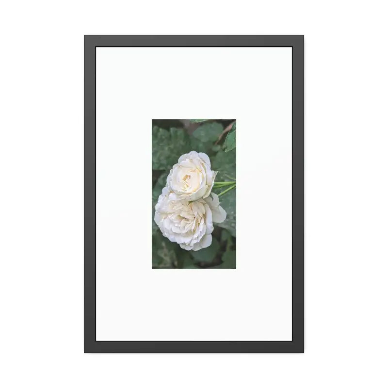Elevate your walls with the captivating charm of white roses, beautifully displayed in these stunning framed paper posters. Bring home this piece today and infuse your space with elegance, calm, and unforgettable allure!