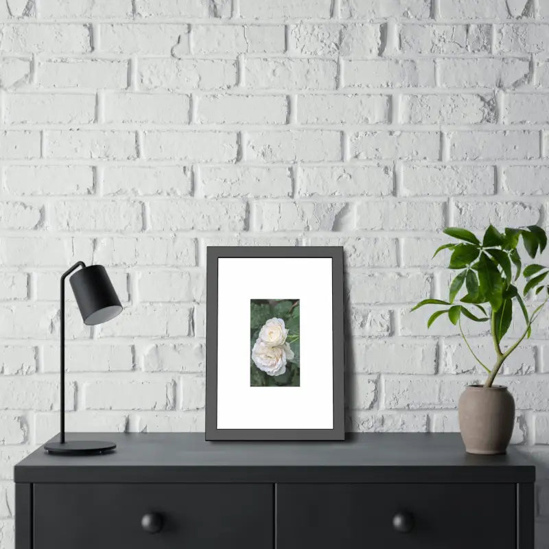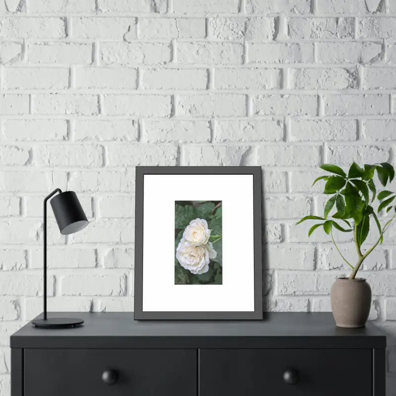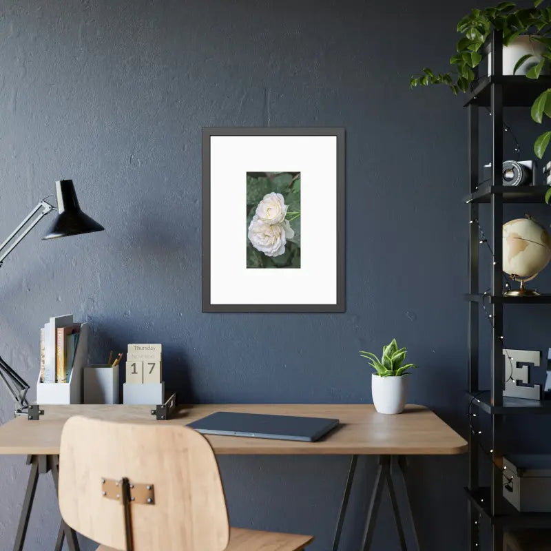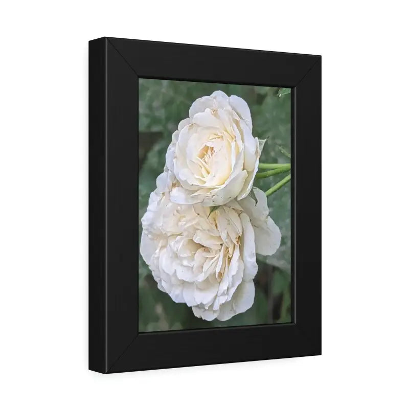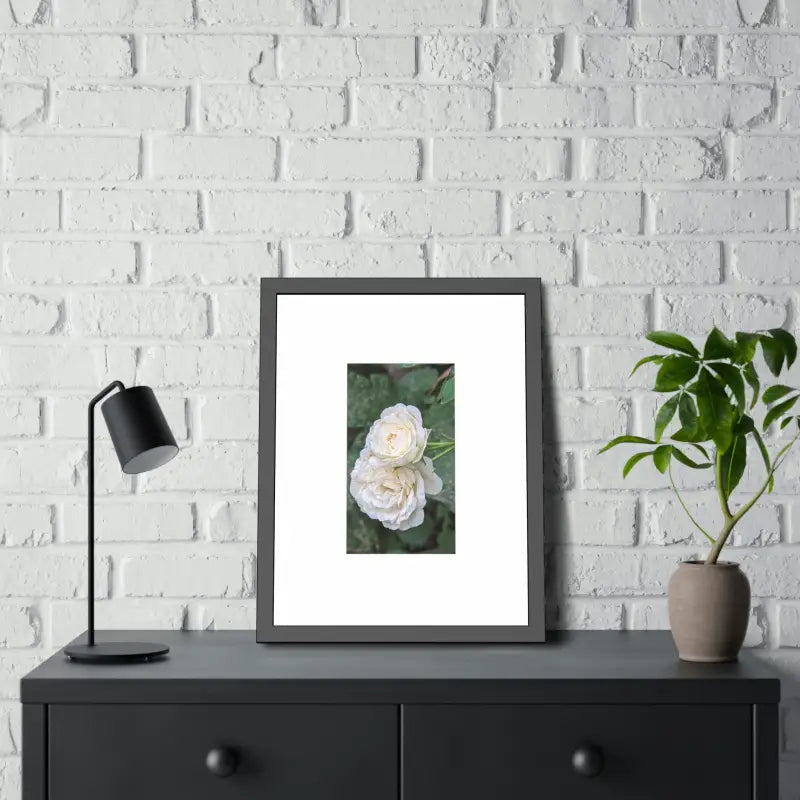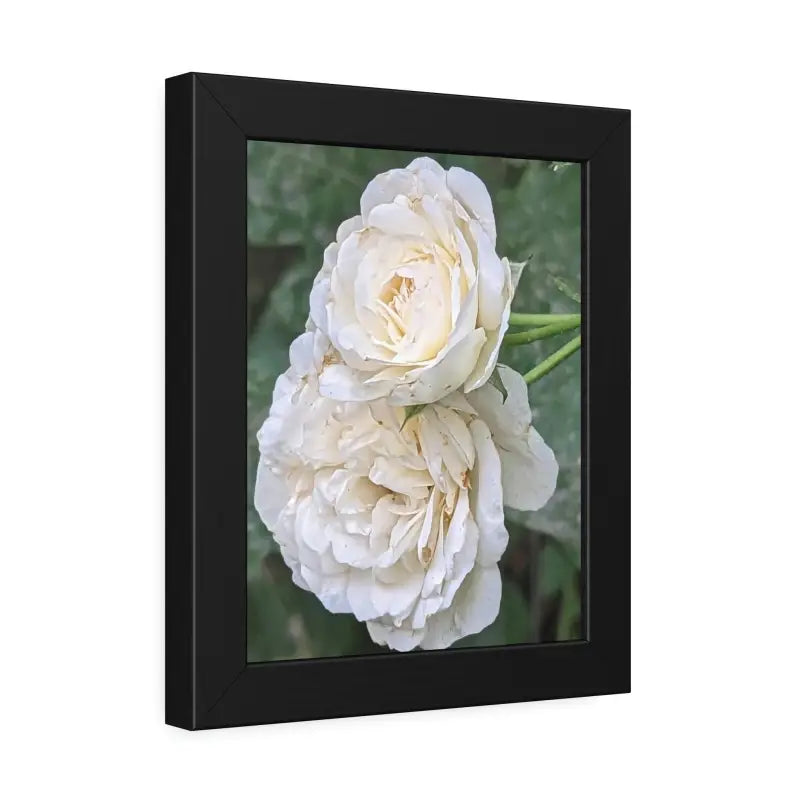Elevate your walls with the captivating charm of white roses, beautifully displayed in these stunning framed paper posters. Bring home this piece today and infuse your space with elegance, calm, and unforgettable allure!