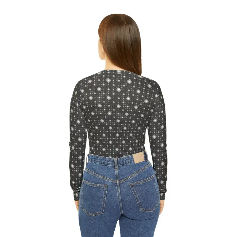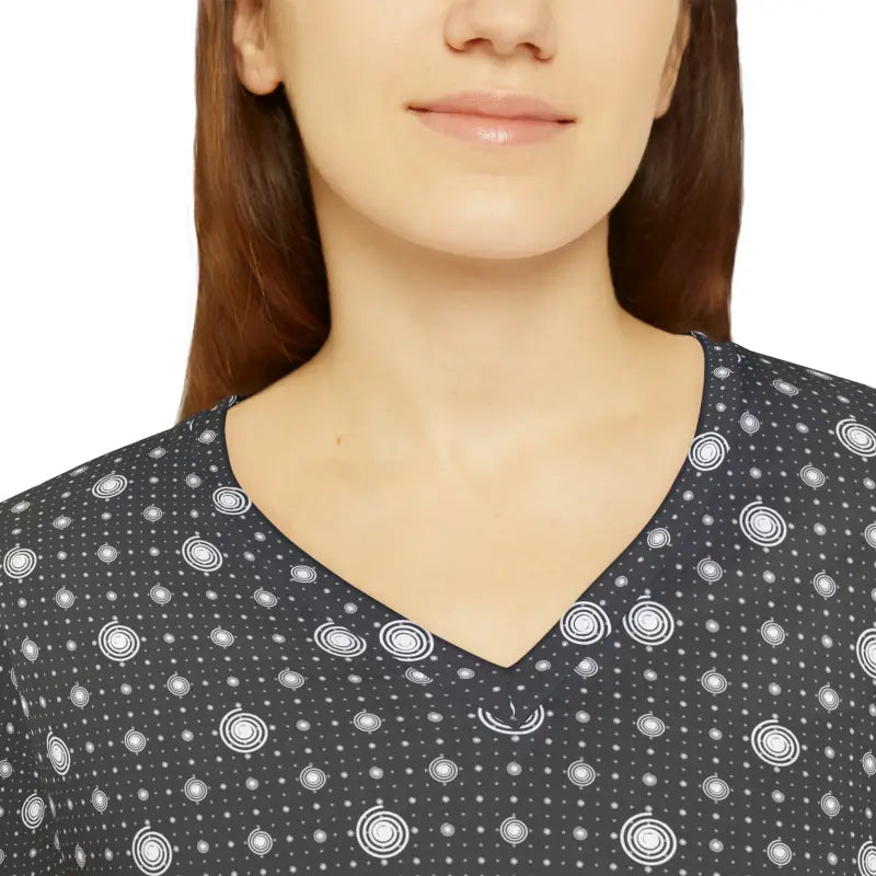 Step up your fashion game with this essential long sleeve tee that merges cozy comfort with a bold white spiral pattern. Perfect for any occasion, this sleeve v neck gem is your new go-to for effortless women’s fashion flair. Grab yours now and embrace the style upgrade you deserve!