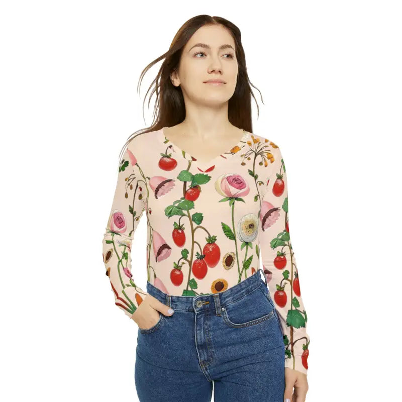 Long Sleeve Wild Flowers Tee - Vibrant Nature Design - DipaliZ