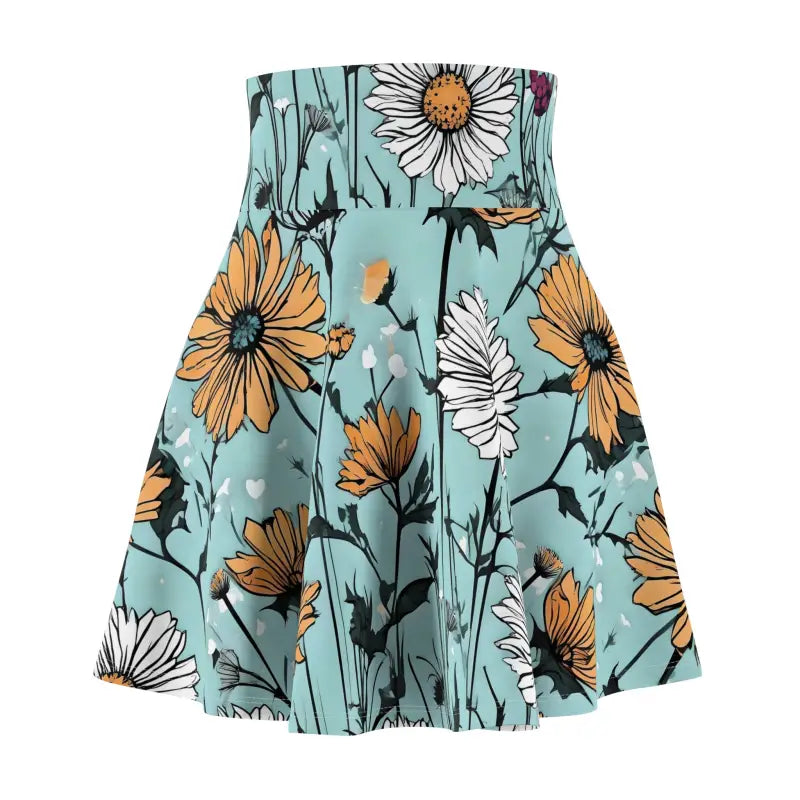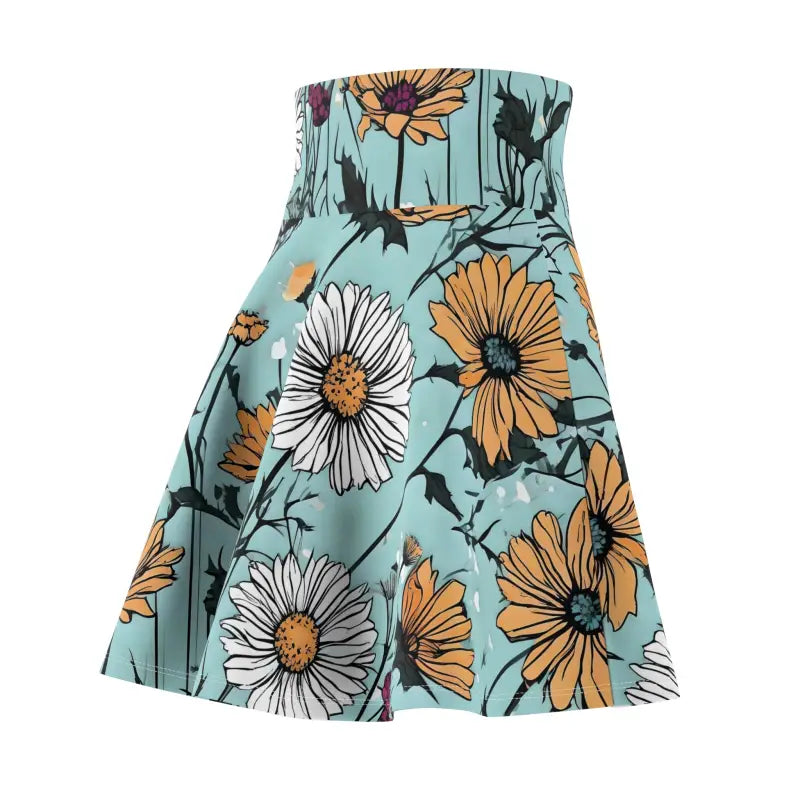Wildflowers on teal, Women's Skater Skirt (AOP). A versatile fit AOP skater skirt with a cozy, soft touch and a casual look. Inspired by the freedom of creativity, it will instantly become your everyday favorite.
