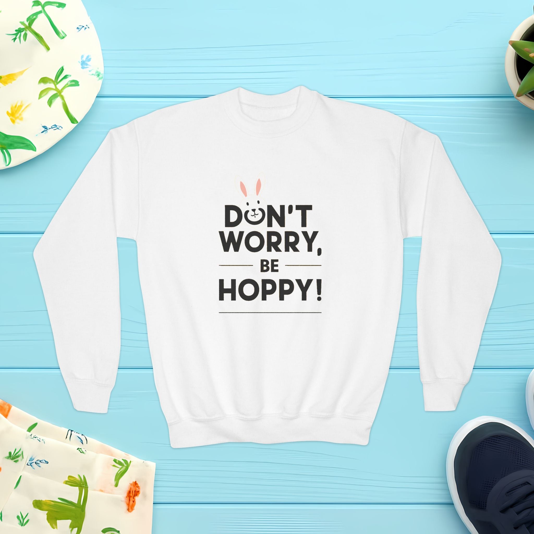Don't Worry, Be Hoppy, Easter Youth Crewneck Sweatshirt