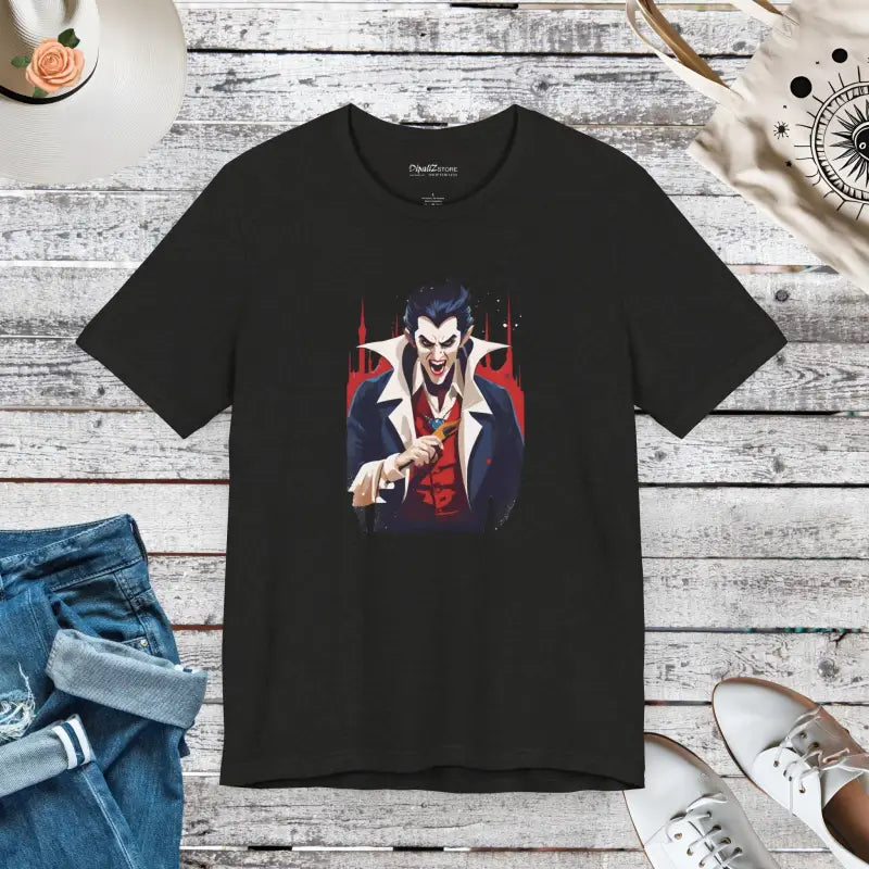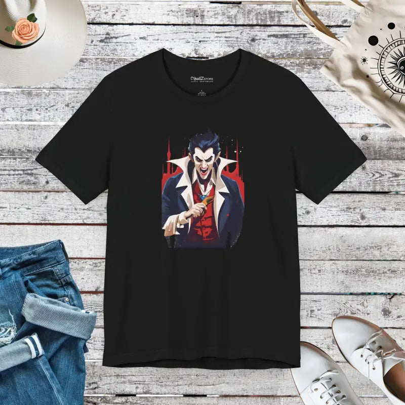 Step into the spotlight this Halloween and beyond with the Dracula Unisex Jersey Short Sleeve Tee. It’s more than just a shirt; it’s a canvas for your ghostly adventures that promises comfort, style, and endless compliments. Don’t miss out on adding this extraordinary piece to your wardrobe — grab yours now and let Dracula help spook up your style!
