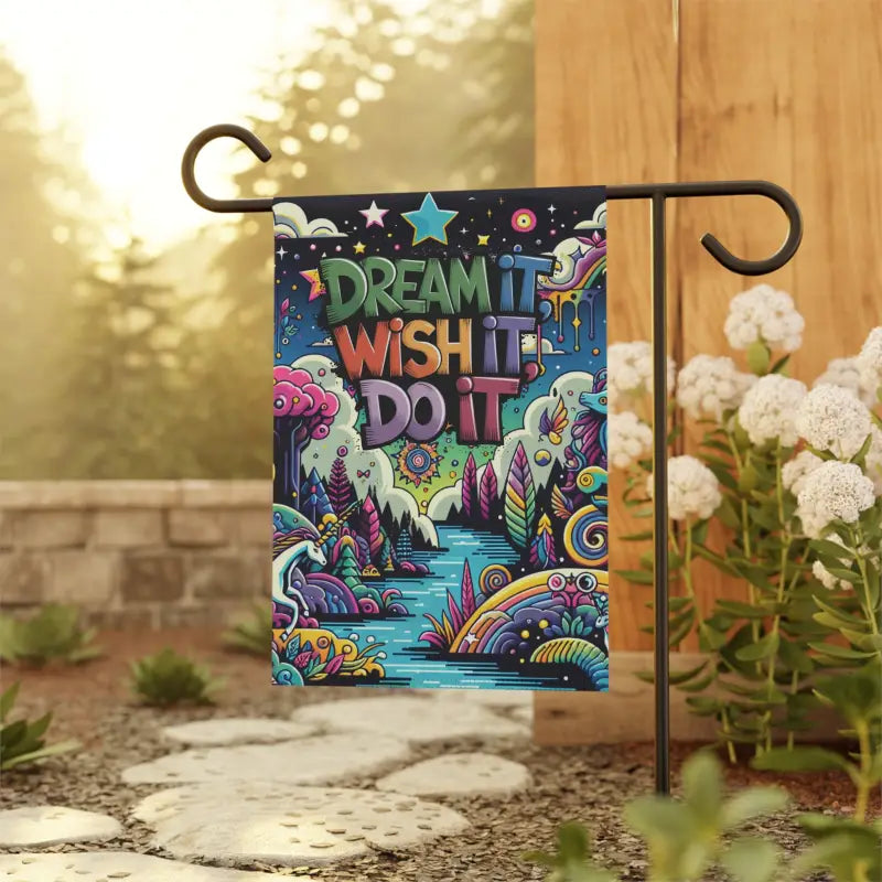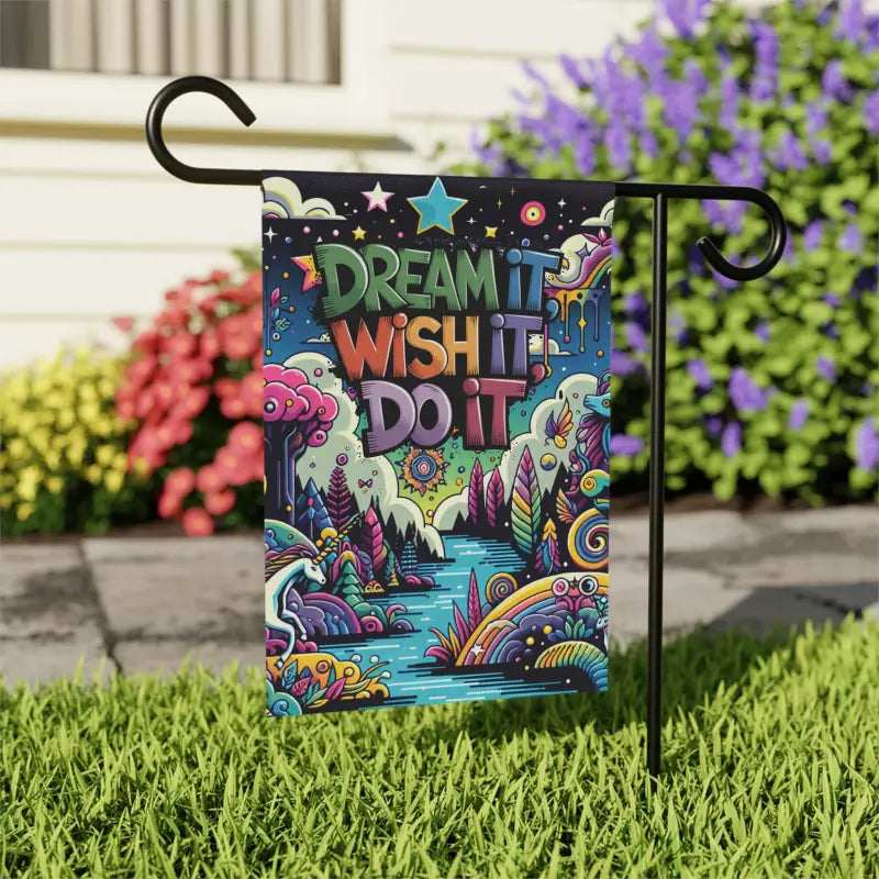 Unleash the magic of transformation with our exquisite Dream It Wish It Do It, Dreamland, Garden & House Banners! These are not just banners; they're a touch of elegance and charm for your home or garden. Crafted from premium, lightweight yet incredibly durable poly poplin-canvas fabric, these banners are designed to inspire and captivate. Choose from two perfect sizes (12'' × 18'' and 24.5'' × 32'') to fit your space seamlessly. With a top sleeve for effortless hanging on poles, displaying your banner is as simple as dreaming it!