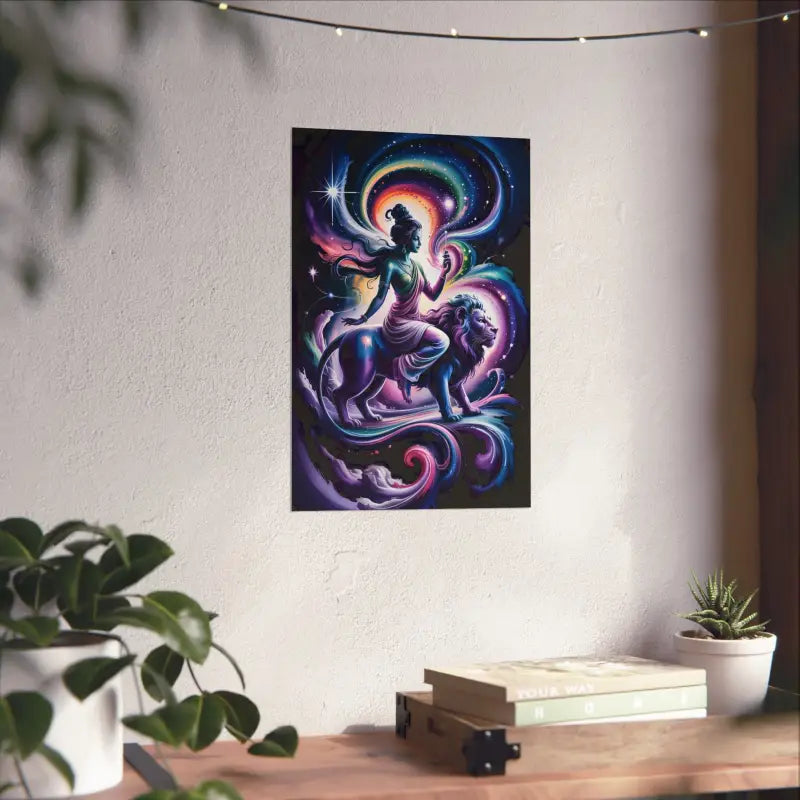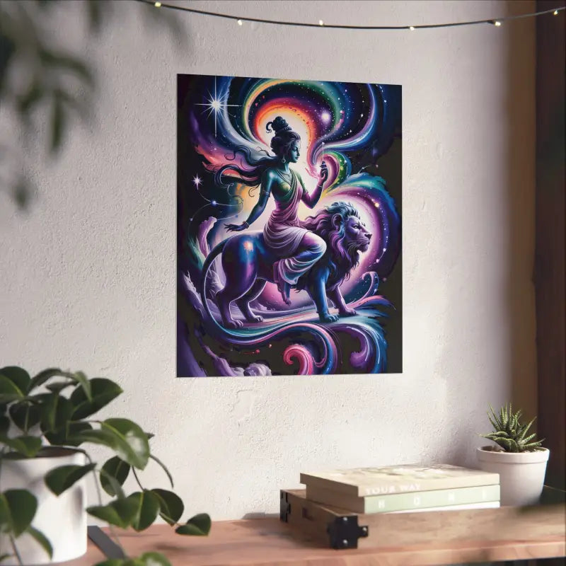 Durga Goddess Poster Matte Vertical Mystic Lion Art - DipaliZ