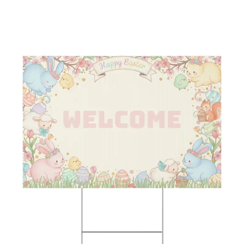 Transform your front lawn into a cheerful Easter wonderland with this adorable plastic yard sign that greets every visitor with springtime joy and pastel charm!