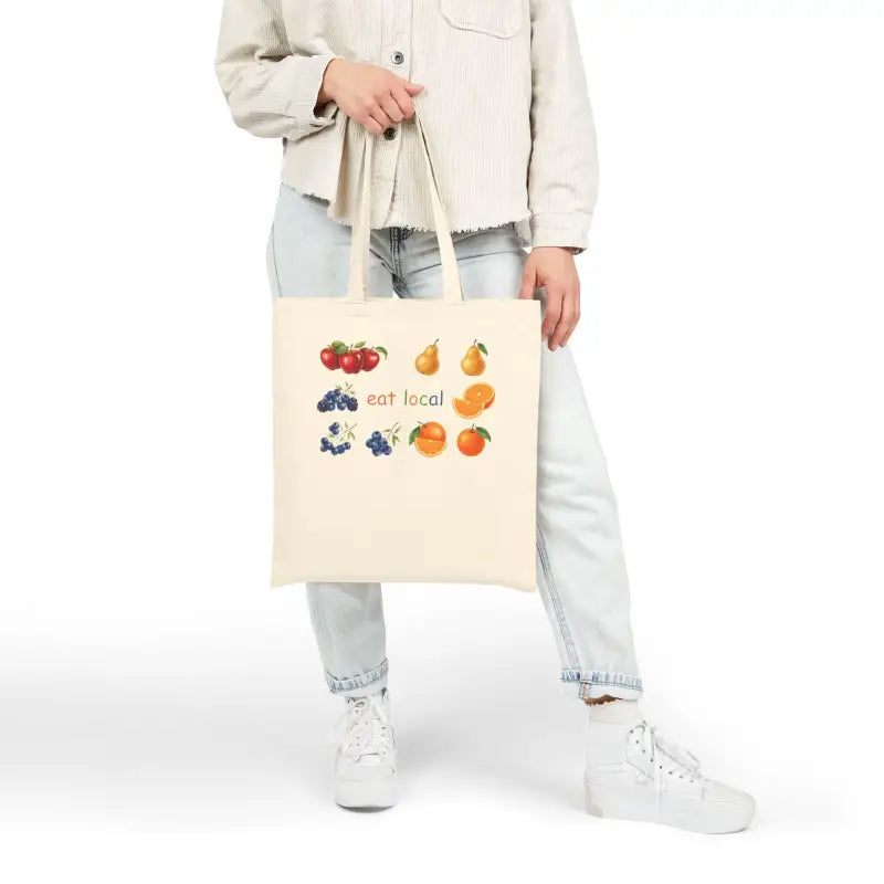 Eat Local Produce Canvas Tote - Farmers Market Bag - DipaliZ