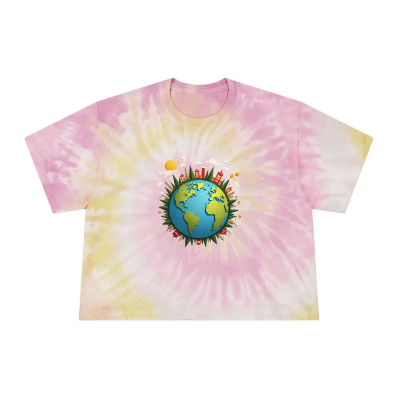 Print: A dreamy earth-inspired tie-dye pattern bursts with vivid energy and artistic flair in every crop tee.