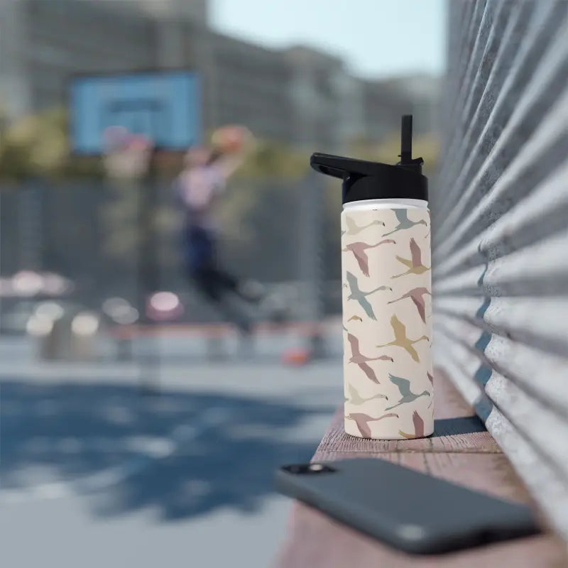 - Eco-friendly steel water bottle offering a vibrant design and innovative functionality.