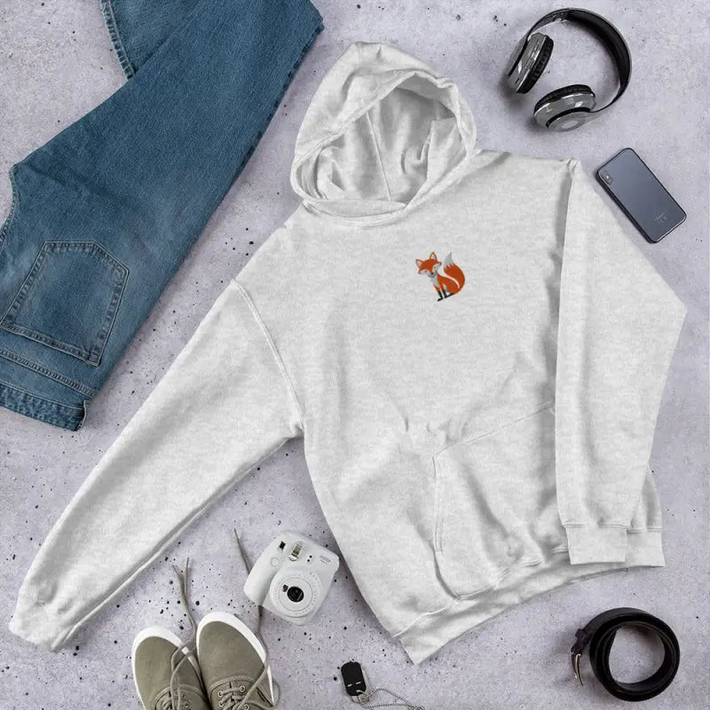 Wrap yourself in a cozy unisex hoodie where every touch feels like a warm hug, featuring an embroidered red fox that brings woodland magic to modern lifestyle essentials.