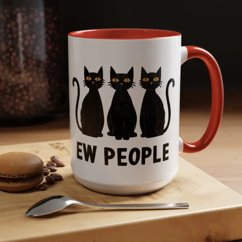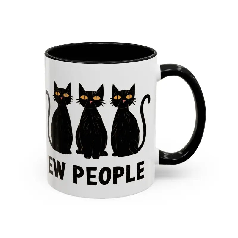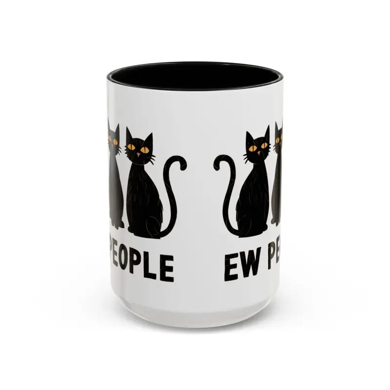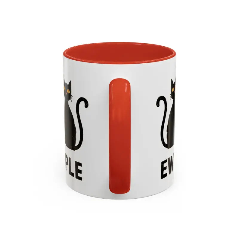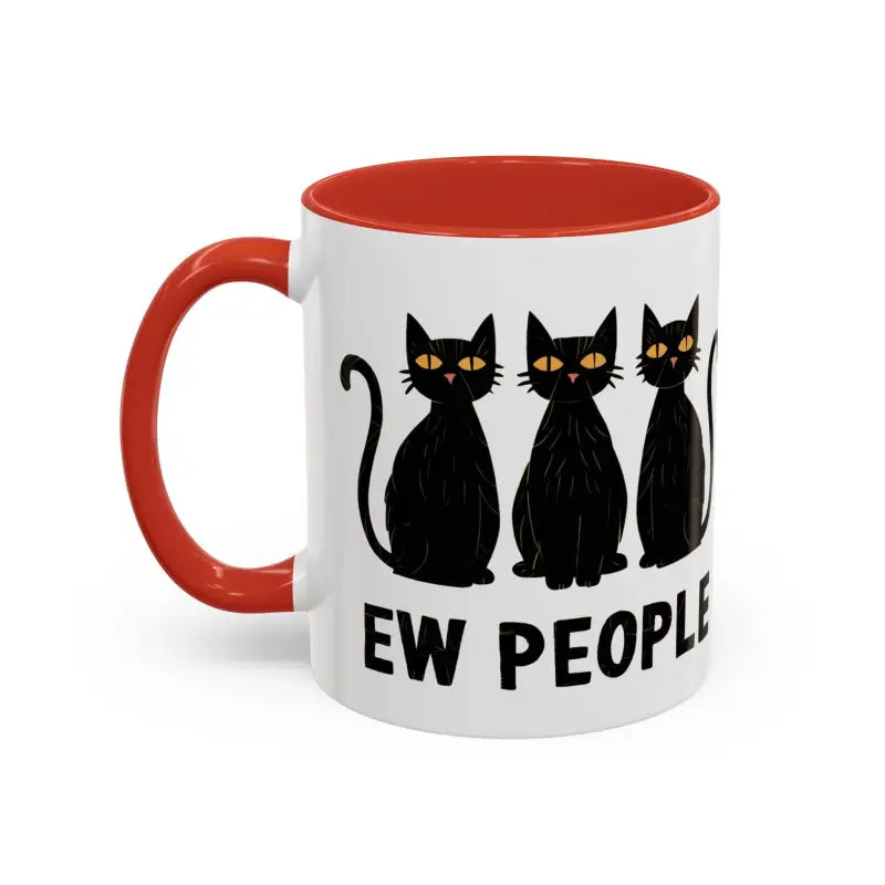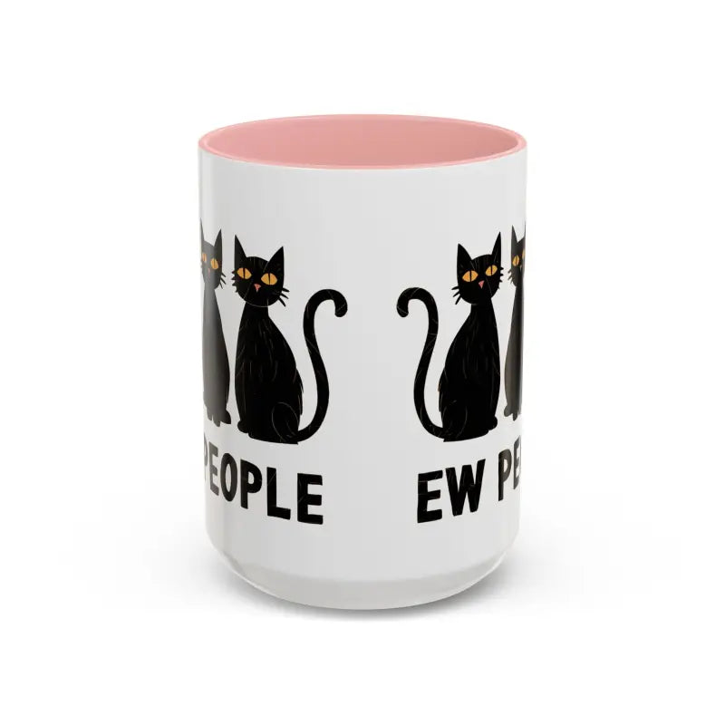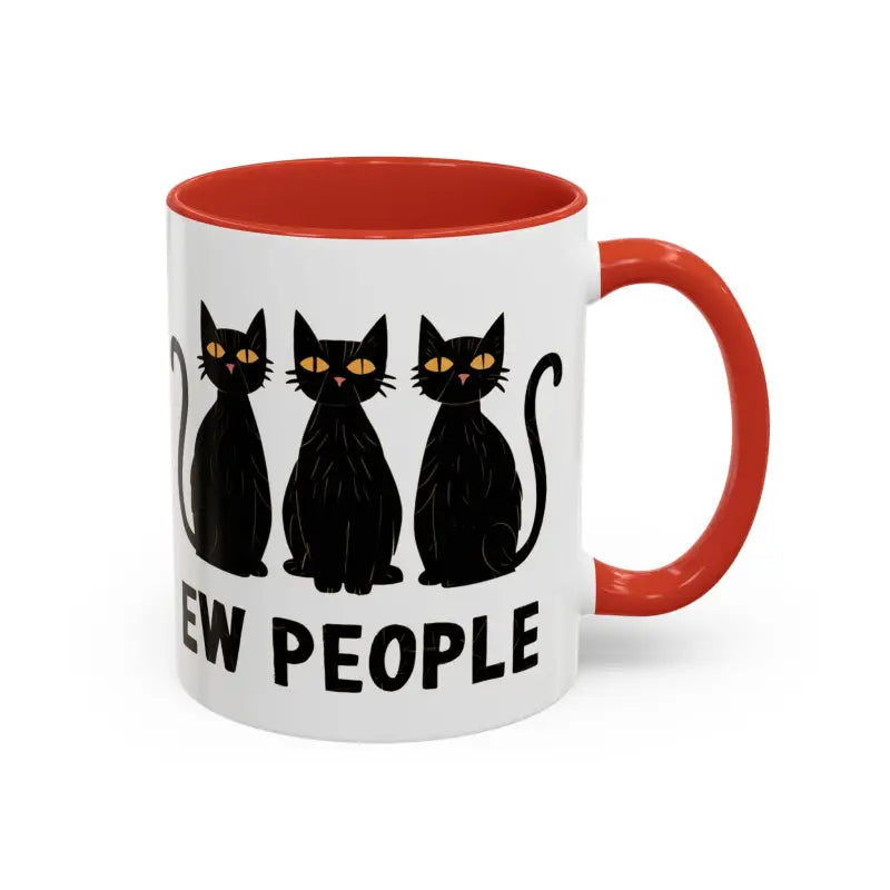 Ew.. People, Three Cats, Accent Coffee Mug, 11oz. Add some color to your routine with this two-tone, accent Ew.. People, Three Cats coffee mug. This 11oz mug features an accented C-Handle that is comfortable to use, as well as an accented interior to add more contrast and character.