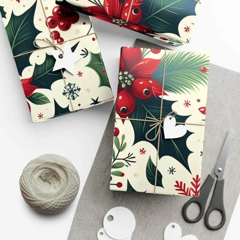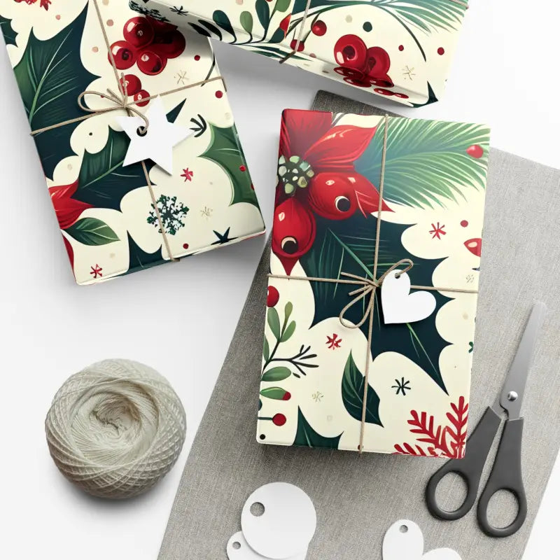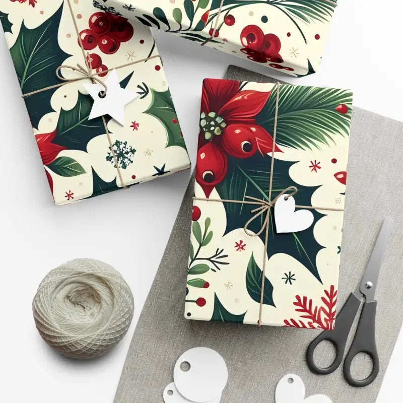Ready to make your holiday gifts stand out like never before? Add instant joy and a touch of elegance to every festive holly gift with this stunning holly gift wrap featuring detailed holly leaves and vibrant berries.