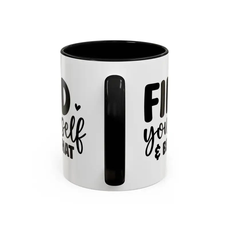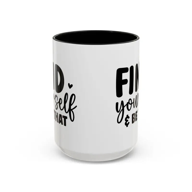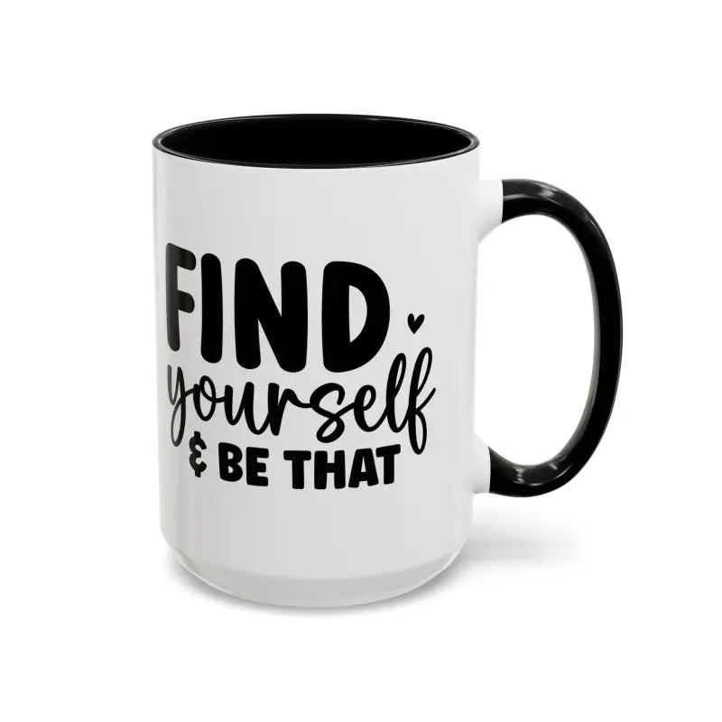 Find yourself, be that, Accent Coffee Mug (11, 15oz). Meet your next favorite morning companion, the accented ceramic mug. This mug brings the perfect blend of style and functionality to elevate your coffee or tea ritual. Available in two generous sizes, 11oz (0.33 l) and 15oz (0.44 l), this mug offers ample space for your favorite brew. Made with white ceramic and sporting a sleek glossy finish with eye-catching contrast, this mug is a bliss both to use and to look at. The ergonomic C-shaped handle provides a comfortable grip, while the lead and BPA-free construction guarantee peace of mind with every sip.