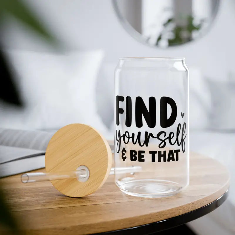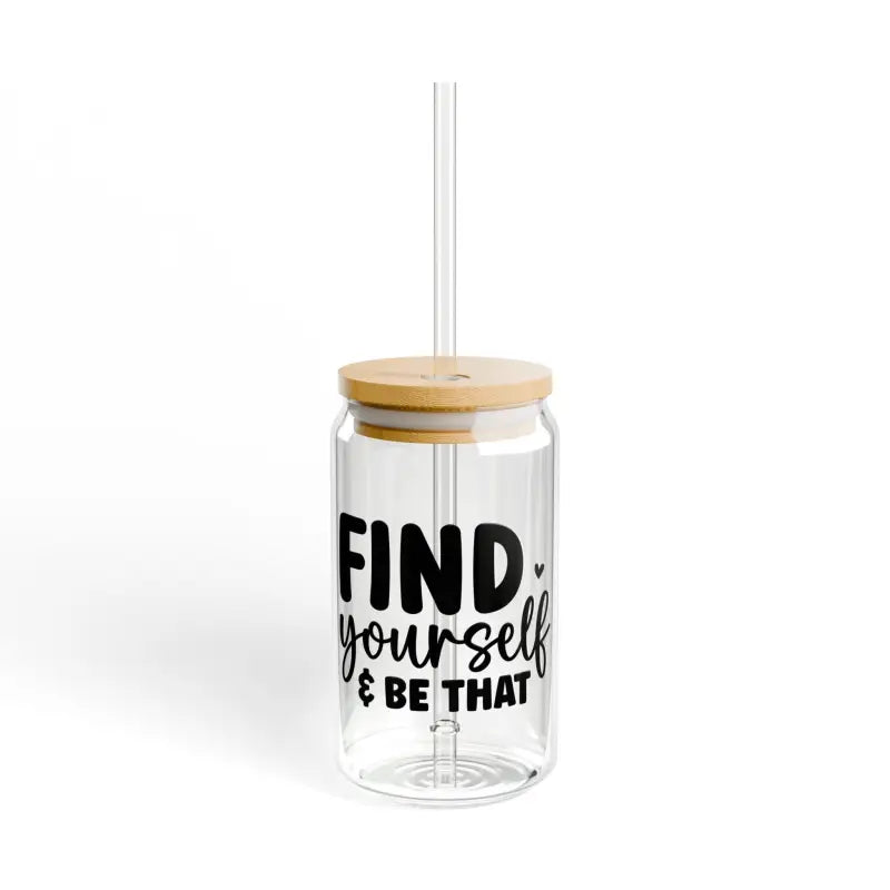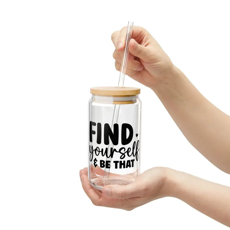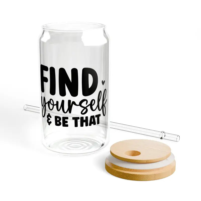 Find yourself be that, BPA free, Sipper Glass, 16oz. Quench your thirst in style with our 16oz Sipper Glass. Made from clear tempered glass, it's durable, sleek, and perfect for refreshing cocktails, juices, or any beverage you fancy. Choose between the classic version or opt for the version equipped with a Gasket-push Bamboo lid and Tritan straw for added convenience. This sipper glass is FDA Certified, BPA Free, and Cal. Prop 65 compliant, ensuring your safety and peace of mind with every sip.