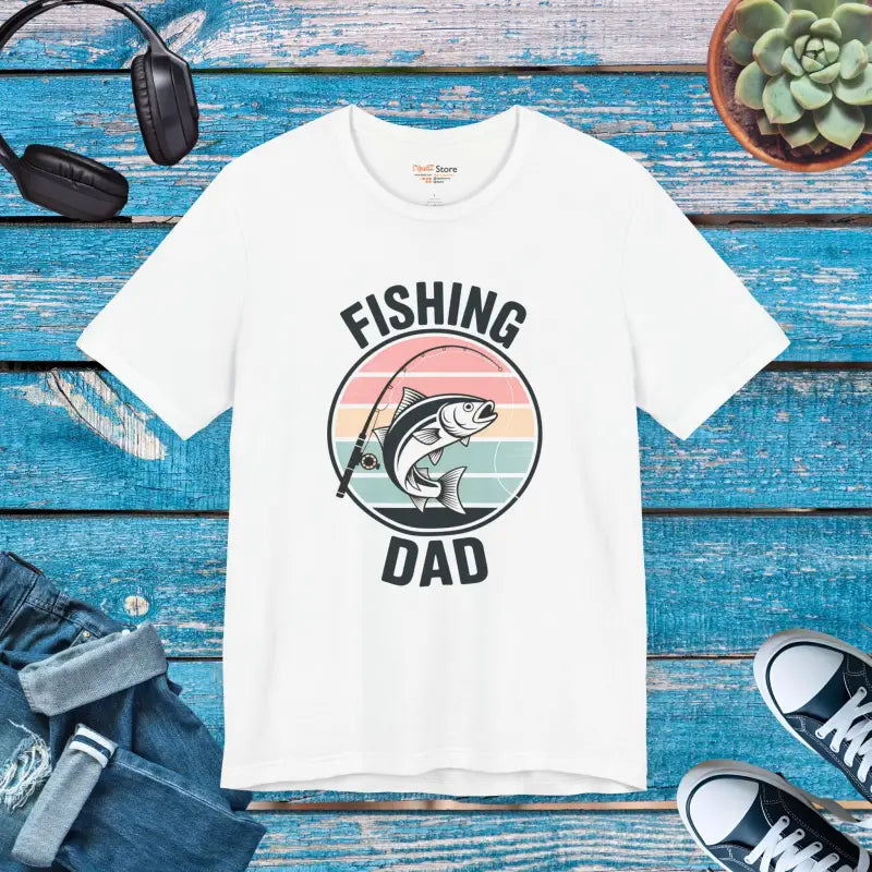 Print: Bold Fishing Dad design perfect for fishing fanatics and style seekers, combining fun and outdoor spirit in a vibrant look for every adventure.