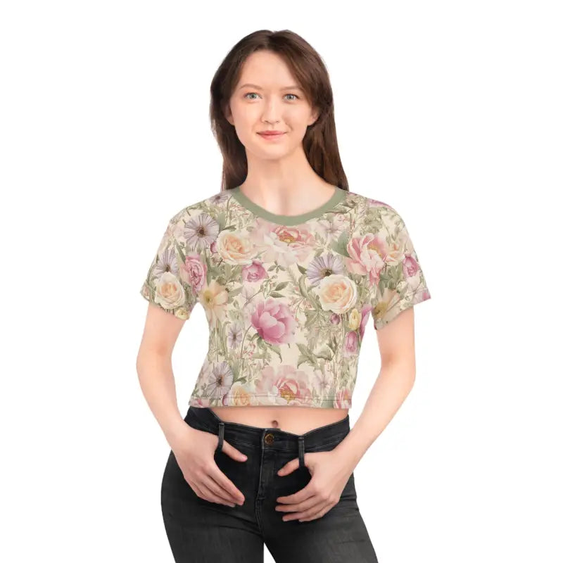 Features and benefits that truly make this floral crop tee stand out include: