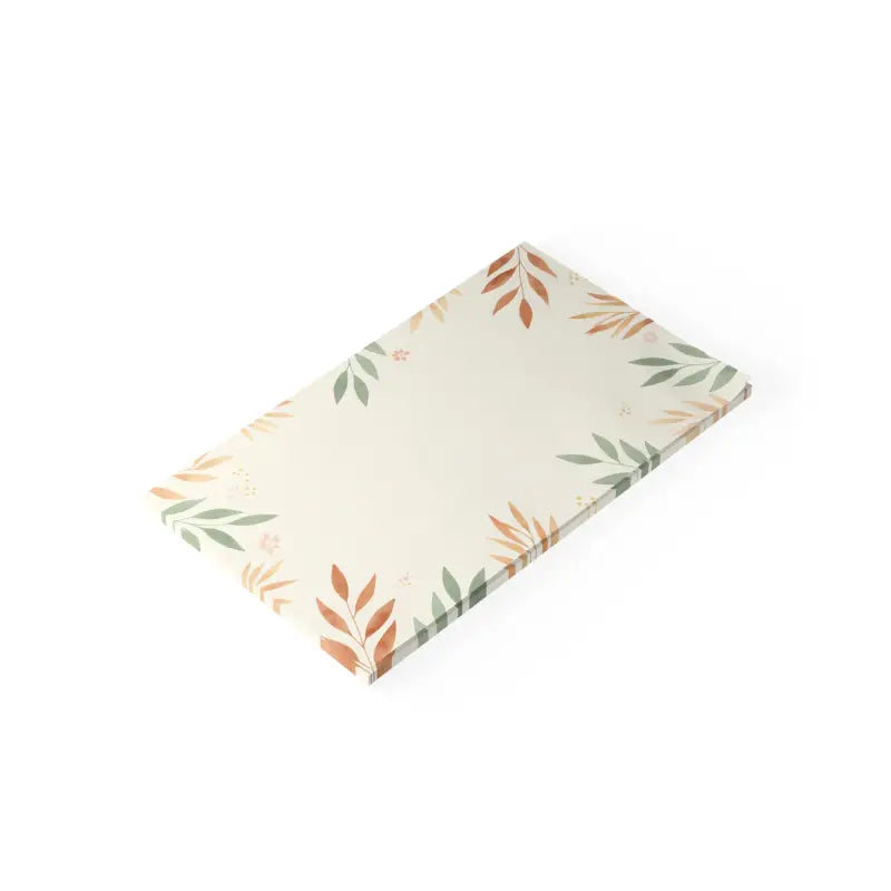 Picture soft sage leaves dancing alongside warm terracotta blooms that frame your words in natural sophistication. The creamy writing space gives your thoughts room to breathe while the floral border adds that perfect touch of intentional beauty to grocery lists, desk reminders, and sweet notes tucked into lunchboxes.
