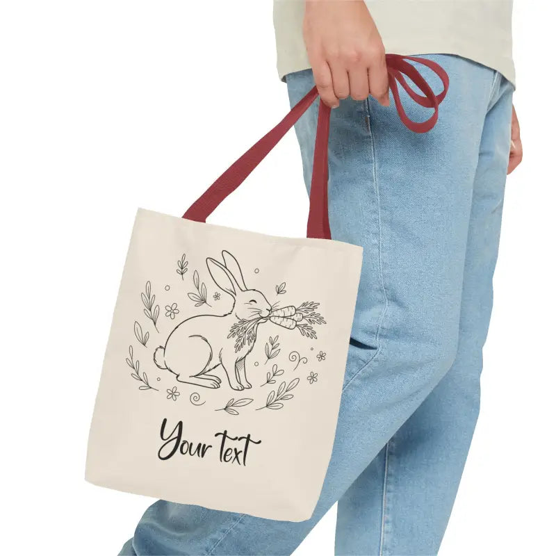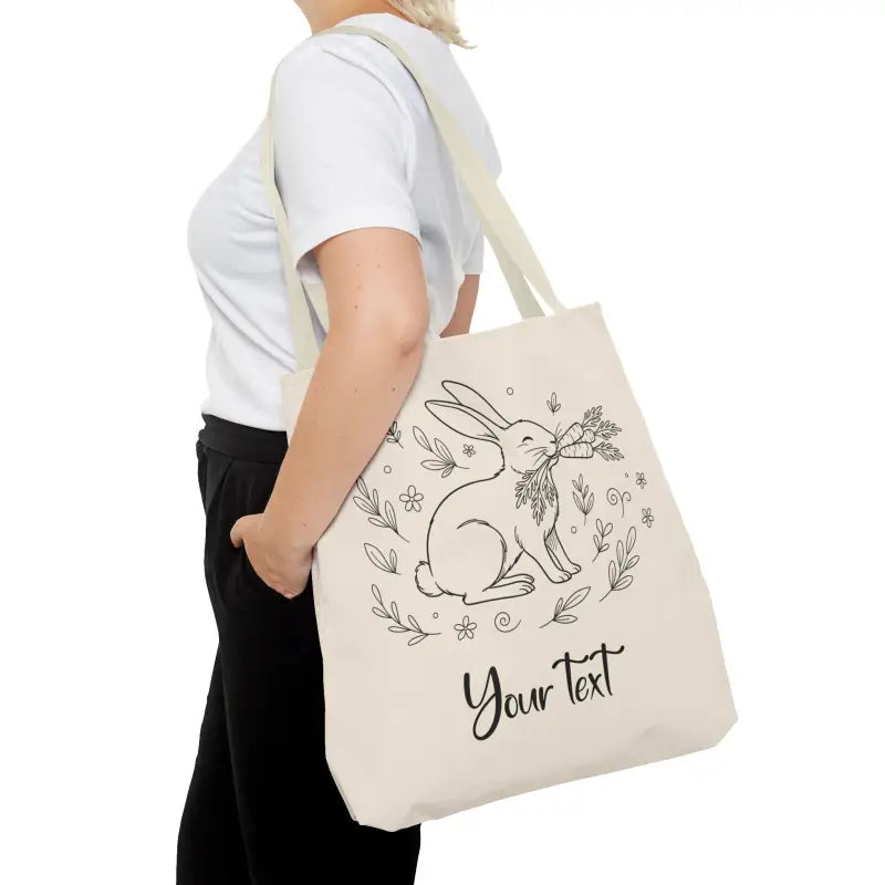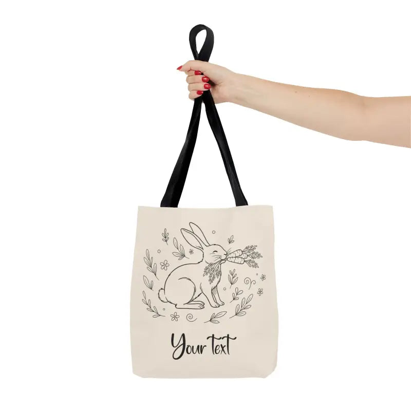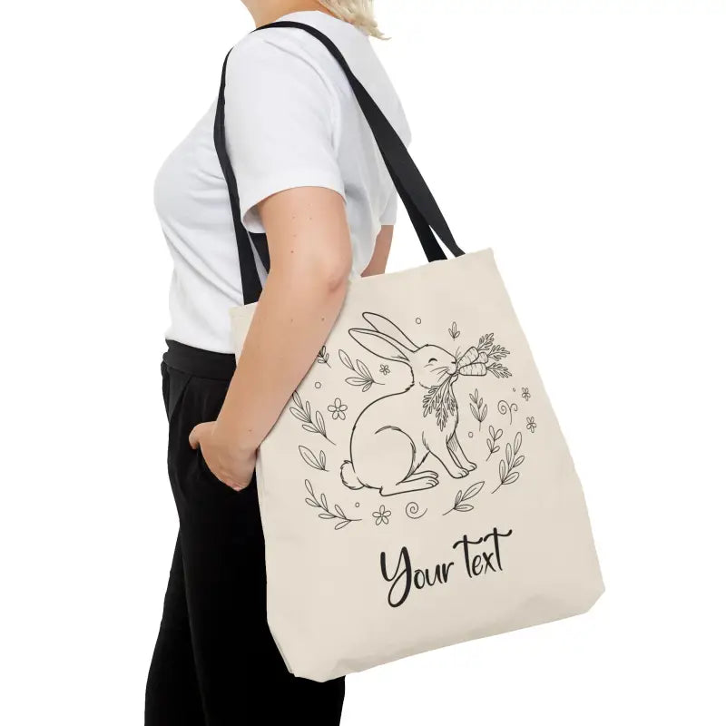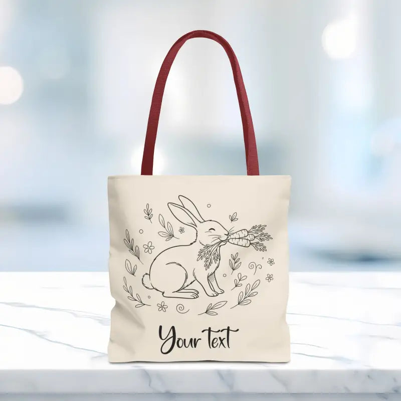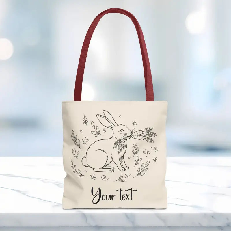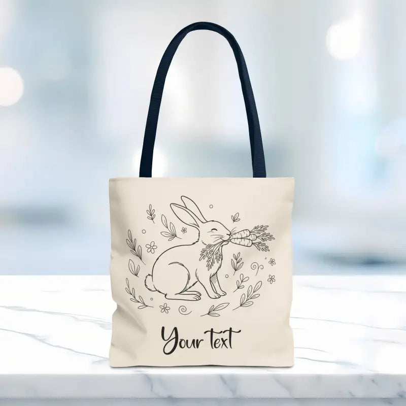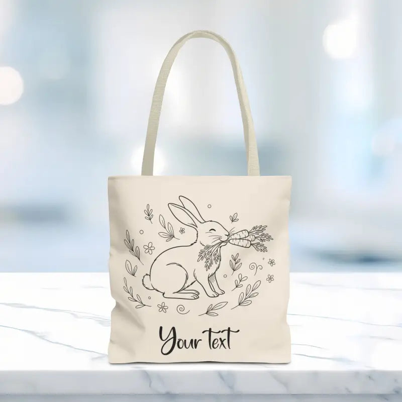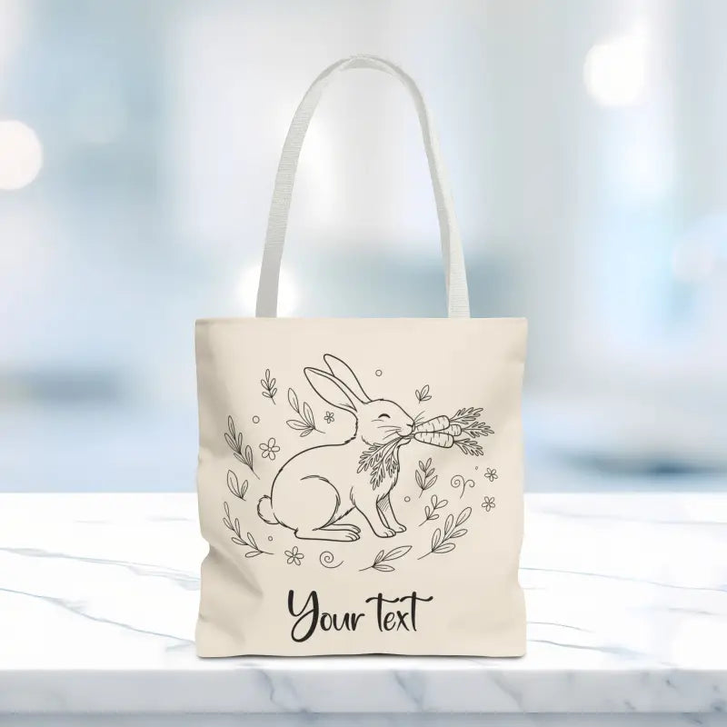 Picture yourself strolling through a sun-dappled farmers market, the soft canvas of your floral bunny tote brushing against your hip as you reach for fresh blooms and crusty bread. This personalized rabbit canvas transforms the mundane into something magical, turning grocery runs and coffee dates into opportunities to showcase your love for all things charming and nature-inspired. The gentle illustration of a sweet rabbit surrounded by wildflowers and botanical elements creates an instant mood lift every time you grab it from your entryway hook. Add your name, a favorite quote, or a meaningful word at the bottom, and this bunny tote bag becomes more than just a carrier—it becomes a reflection of who you are and what brings you joy.