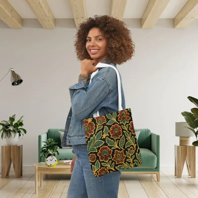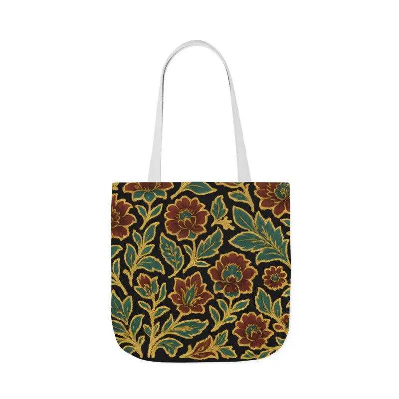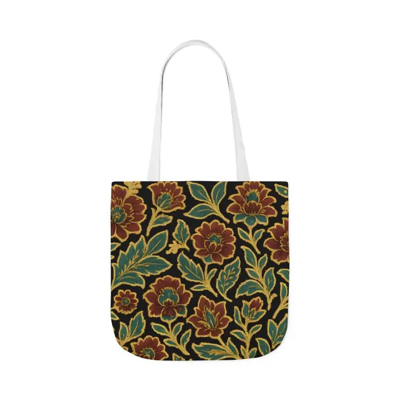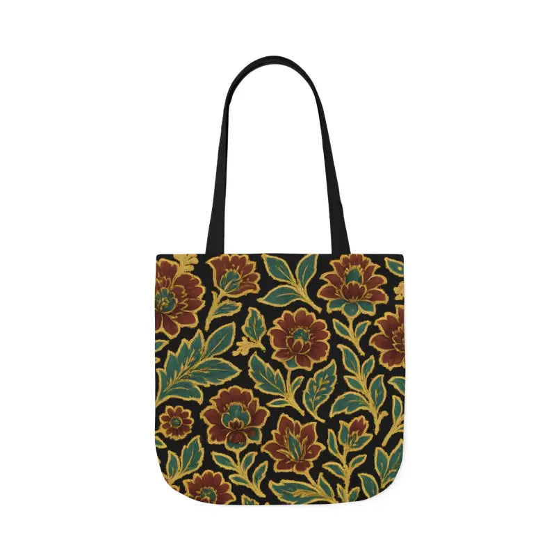 - A perfect blend of functionality and fashion, this floral canvas tote adds personality to any outfit.