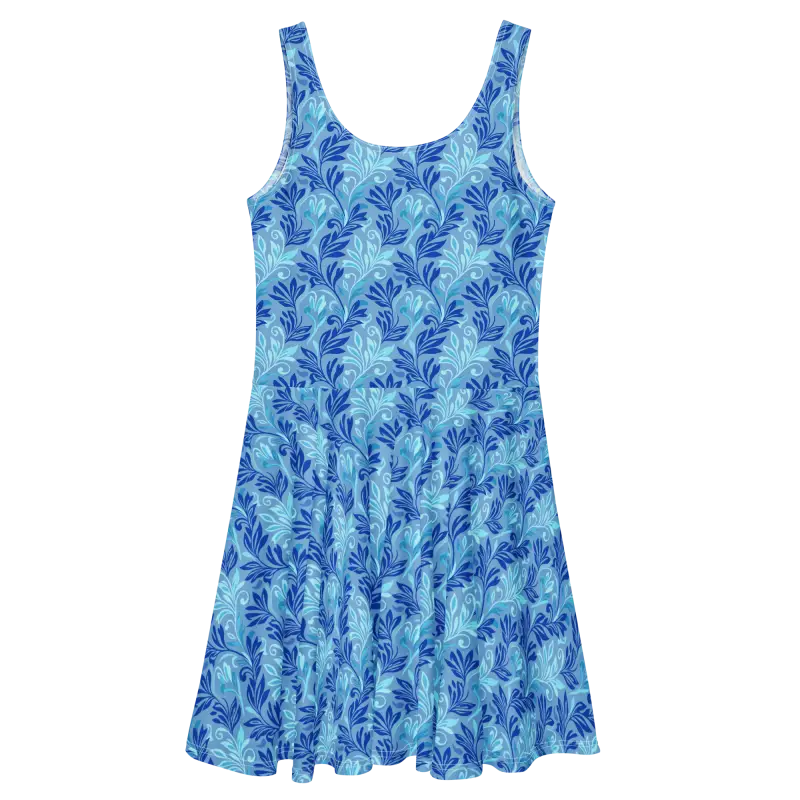 Picture yourself spinning on a sun-drenched patio, the soft breeze catching your skirt as heads turn to admire the stunning floral capri blue pattern dancing across the fabric. This skater dress isn't just another addition to your wardrobe—it's your secret weapon for feeling absolutely unstoppable whether you're meeting friends for brunch, attending a garden party, or making a memorable entrance at that event you've been looking forward to all month. The moment you slip into this dress, you'll notice how the luxurious fabric glides against your skin with a whisper-soft touch that feels as incredible as it looks. The flared skirt creates that coveted feminine silhouette that flatters every body type while giving you complete freedom of movement, so you can dance, walk, or simply exist in total comfort without a single adjustment needed. At 6.64 ounces, the fabric weight strikes the perfect balance between substantial quality and breezy wearability, draping beautifully without clinging or feeling heavy. The floral capri design bursts with vibrant energy that tells the world you're confident, creative, and unafraid to embrace color and pattern in ways that celebrate your unique style. Wear this versatile piece to outdoor weddings where you'll photograph like a dream, style it with a denim jacket for casual weekend adventures, dress it up with heels and statement jewelry for date nights, pair it with sneakers for farmers market mornings, or throw on a cardigan for professional creative workplace settings where personality is welcomed.