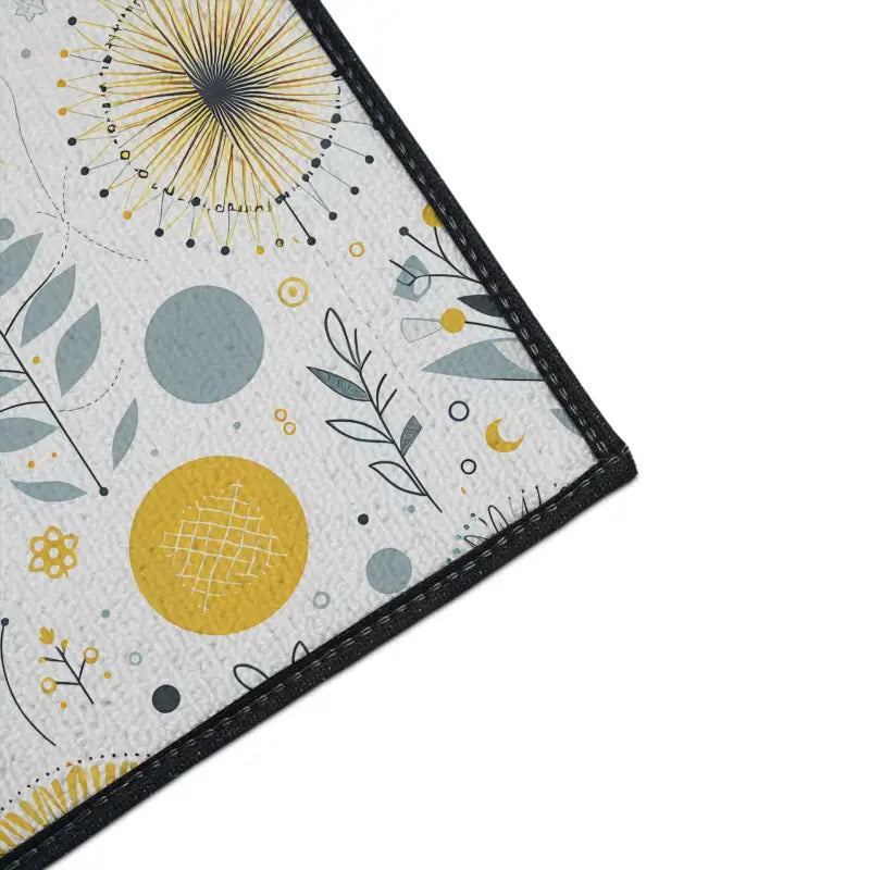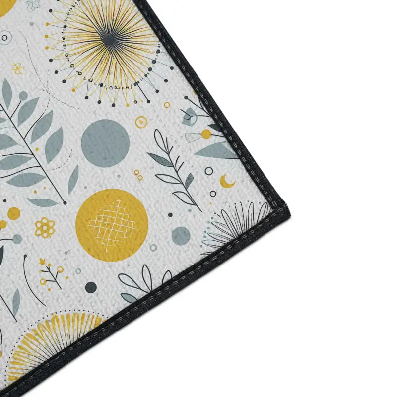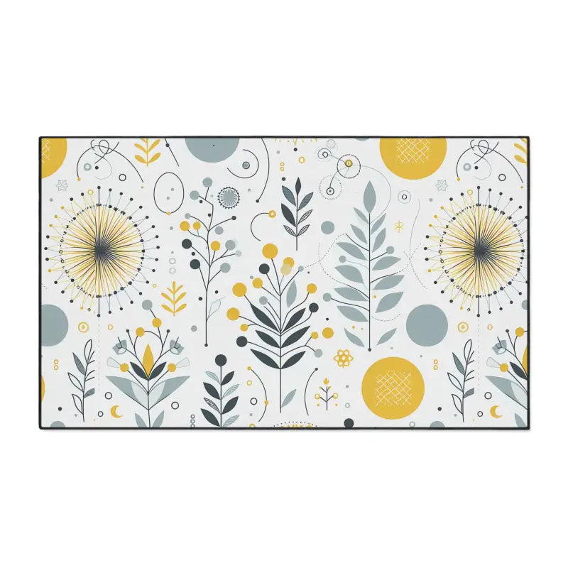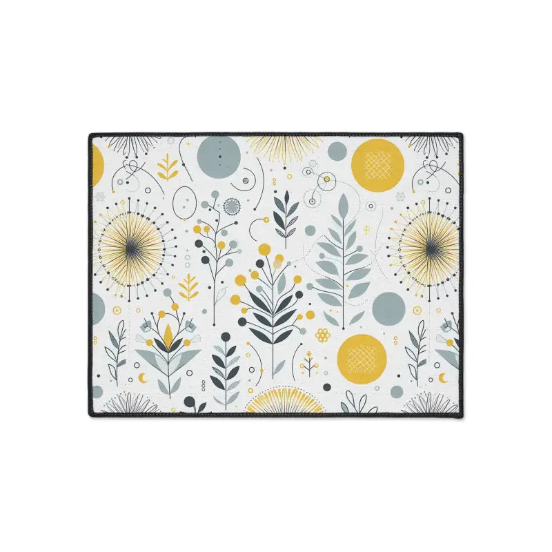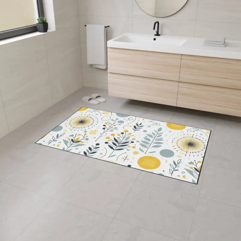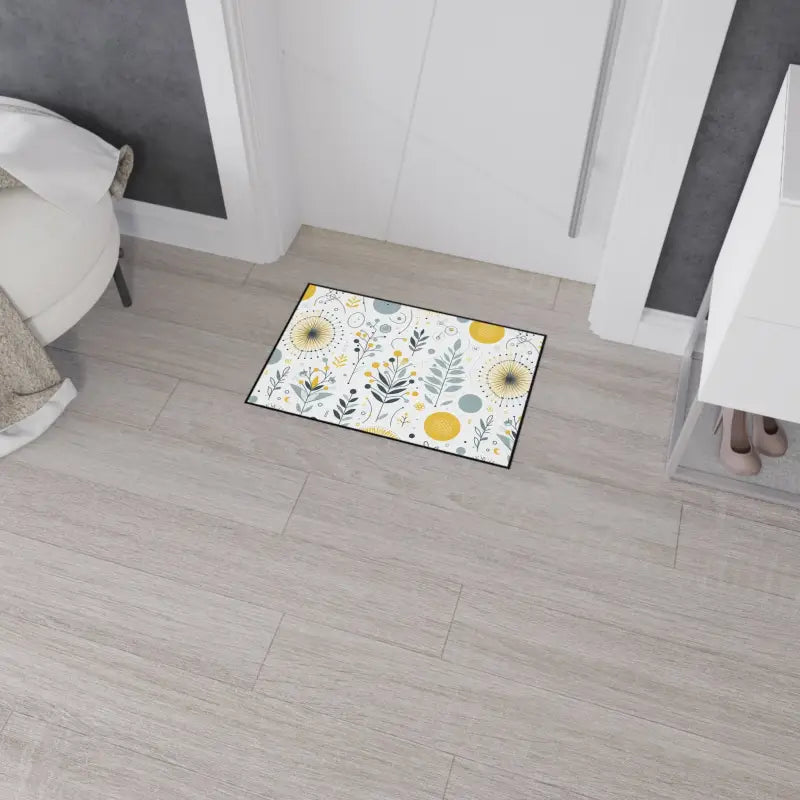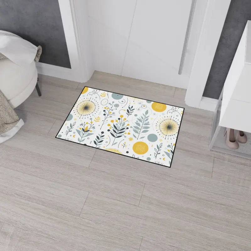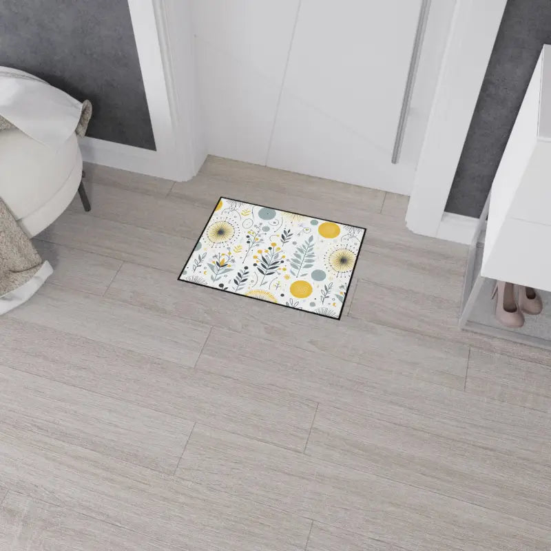 Experience the ultimate upgrade to your living space with our floor mat that effortlessly combines stylish aesthetics with heavy duty performance. This vibrant heavy duty floor mat stands out thanks to its stunning array of floral designs in a gorgeous combination of grey, yellow, and multiple captivating colors. It not only brightens up your entryway, kitchen, or living room but also makes a bold statement when it comes to durability and style.