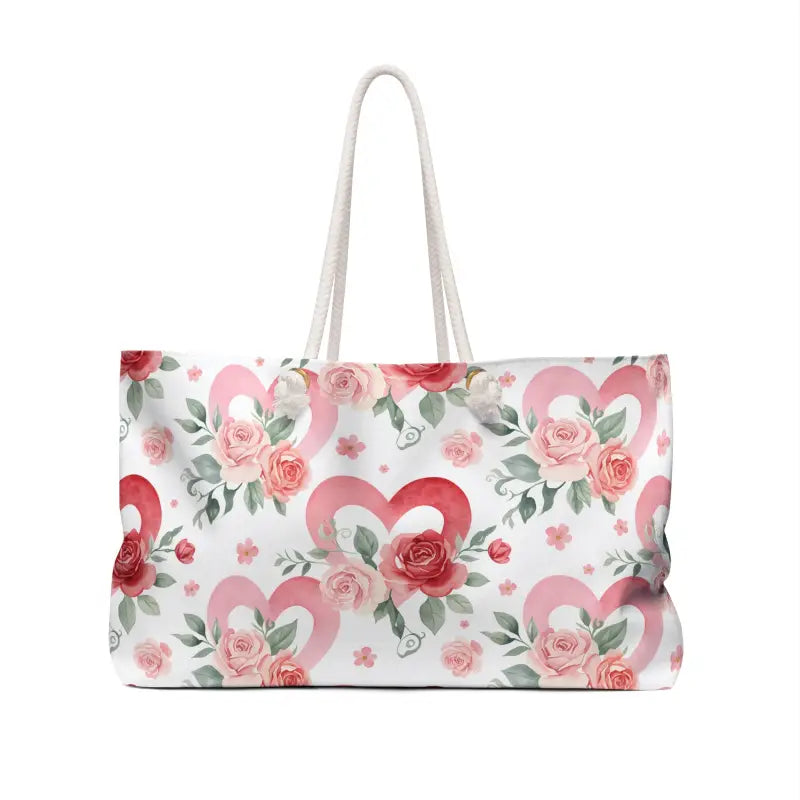 Picture this: you're zipping out for a long weekend, sunlight streaming through your window, and you reach for a bag that feels like carrying a love letter. This floral heart weekender transforms every departure into something magical, with watercolor roses and layered hearts dancing across soft fabric that catches the light like morning dew on garden petals. The moment you lift those cream rope handles onto your shoulder, you feel the weight of adventure mixed with elegance, ready to turn heads at the train station or poolside. Each bloom shifts and reveals itself differently as the bag moves with you, creating an ever-changing canvas that mirrors your own journey. This isn't just luggage, it's your companion for romantic getaways, spontaneous road trips, and those precious moments when you want to arrive somewhere feeling utterly yourself.
