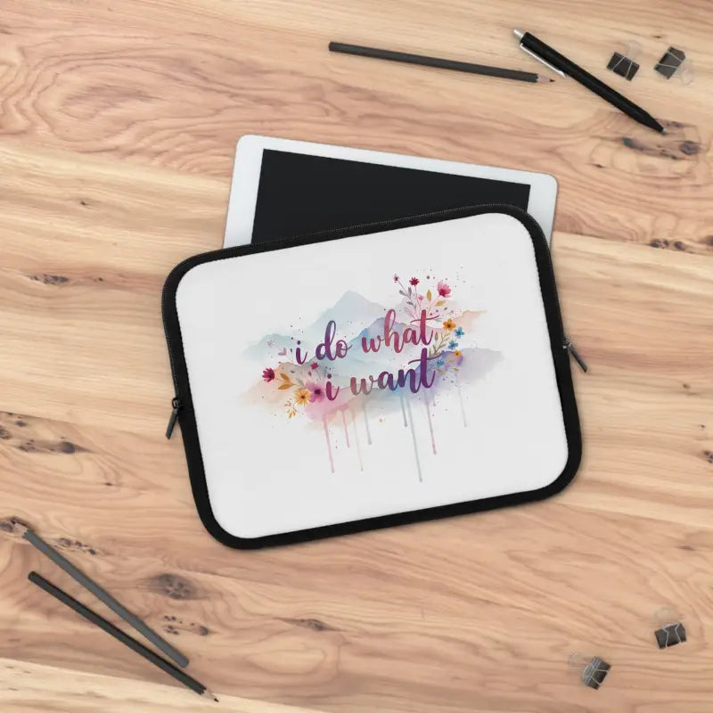 Picture yourself striding through a bustling coffee shop, your laptop tucked safely inside a sleeve that screams confidence and personality with every vibrant floral detail dancing across its surface. The Floral I Do What I Want design isn't just a statement—it's your daily reminder that you call the shots while keeping your most essential tech perfectly protected. This personalized laptop sleeve transforms the mundane task of carrying your computer into an opportunity to showcase your fearless attitude and impeccable style. Whether you're rushing between meetings, settling into a coworking space, or boarding a flight for your next adventure, this sleeve announces your arrival with unapologetic flair. The water-resistant construction wraps your device in reliable defense against unexpected spills and weather surprises, while the sleek black polyester backing provides a sophisticated contrast that makes those bold florals pop even more dramatically.
