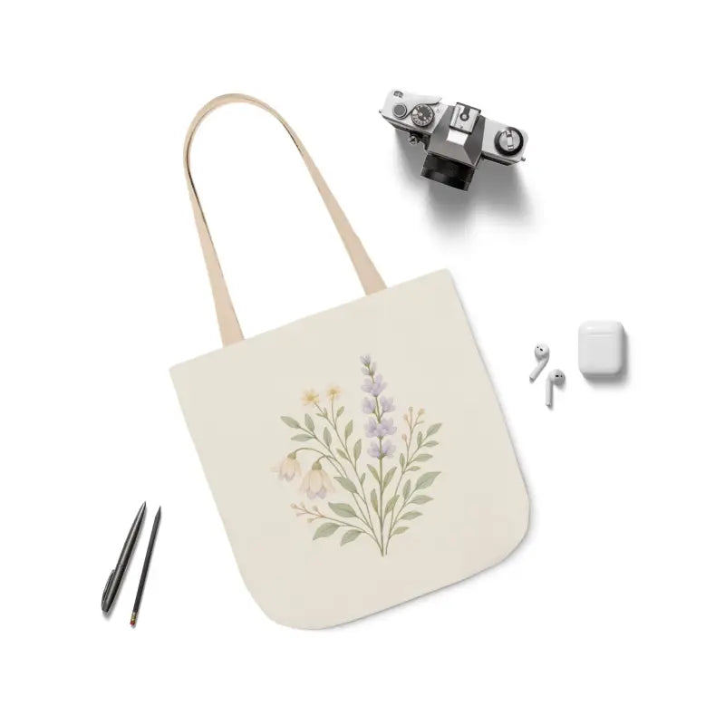 Floral Meadow Canvas Tote Soft Botanical Style DipaliZ