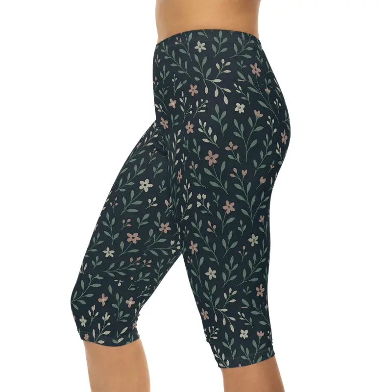 Women's Capri Leggings - Floral Comfort Workout Style - DipaliZ