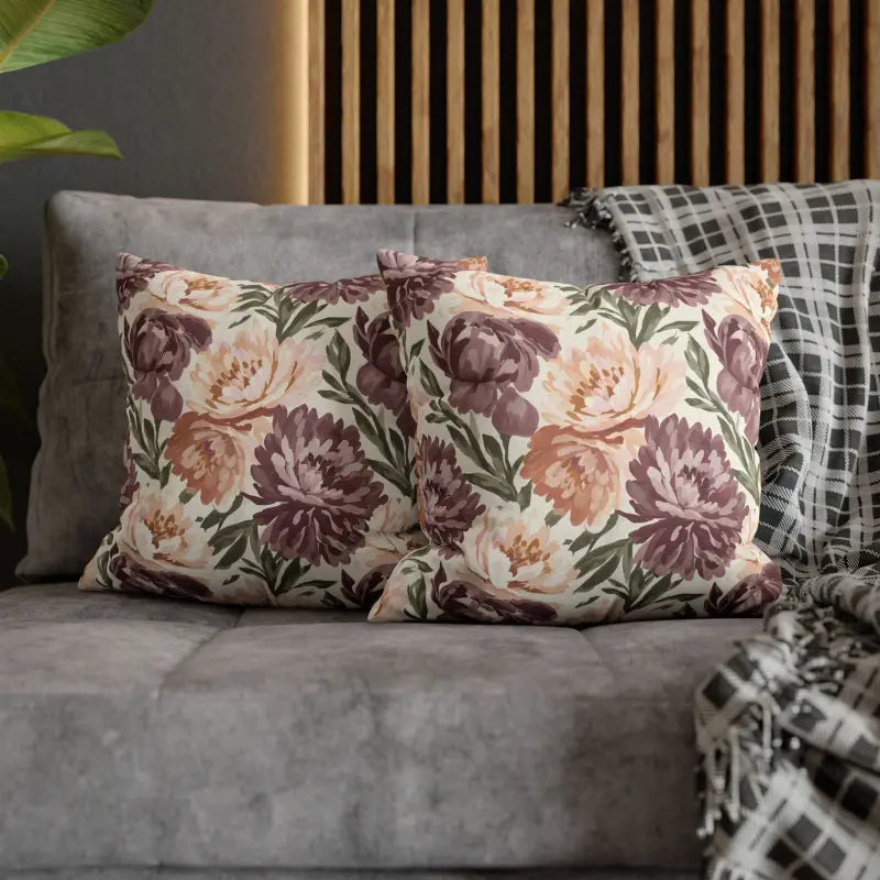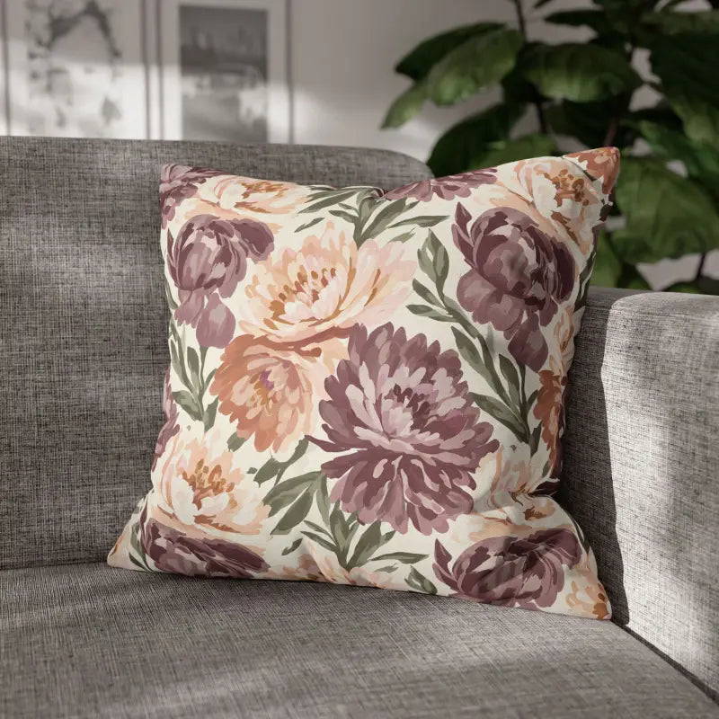 This mauve decorative throw features painterly peony florals in gorgeous warm tones mixed with sage green accents. The vintage-inspired design adds sophisticated charm whether you toss it on your sofa, bedroom, or favorite reading nook.