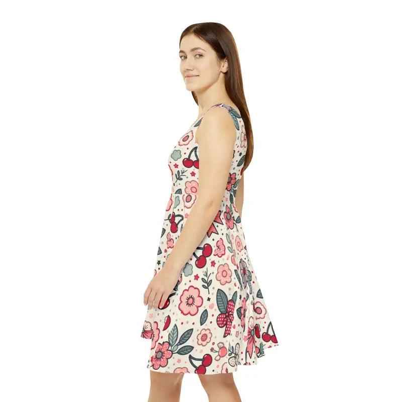 Floral Print Women’s Skater Dress for Spring & Summer Celebrations. Step into spring with this charming skater dress, designed to bring a touch of whimsy to your wardrobe. The vibrant colors and playful floral patterns capture the essence of fun and femininity, perfect for casual outings or picnics in the park. Made for those who love to express their style, this dress is ideal for young women and fashion-forward individuals looking for comfort and flair. Its high cut neckline and asymmetrical skirt lend a modern twist, making it suitable for celebrations like birthdays, brunches, or any festive occasion. Embrace the joy of dressing up with this versatile piece that complements your lively spirit!