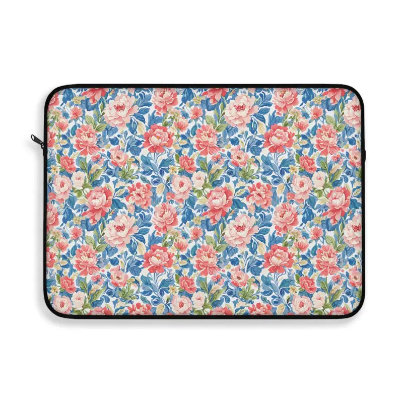 Floral Rose Pattern Laptop Sleeve - Vintage Garden Case - DipaliZ