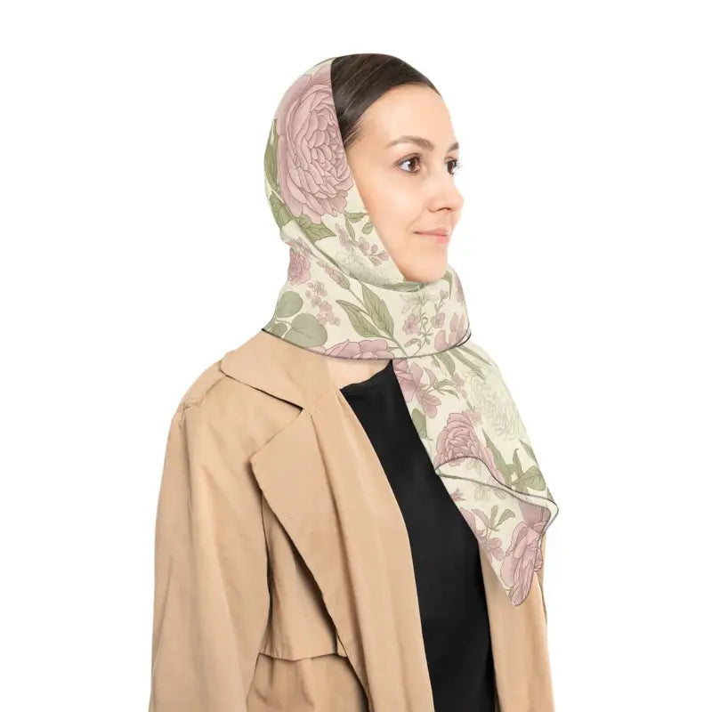 Picture yourself stepping into a sunlit garden where vintage roses bloom in soft whispers of pink and sage, their delicate petals catching the morning breeze. That's the magic you'll wrap around yourself with this stunning floral rose pattern poly scarf that transforms any outfit into a romantic statement. The moment this lightweight beauty touches your skin, you'll feel the silky-smooth polyester fabric glide effortlessly, creating that perfect balance between substantial presence and airy comfort. Every flutter and drape brings the vintage rose pattern to life, making you look like you've just stepped out of a dreamy garden party. This isn't just another accessory—it's your ticket to channeling effortless elegance whether you're rushing to brunch, strolling through farmers markets, or adding that final touch to your evening ensemble.