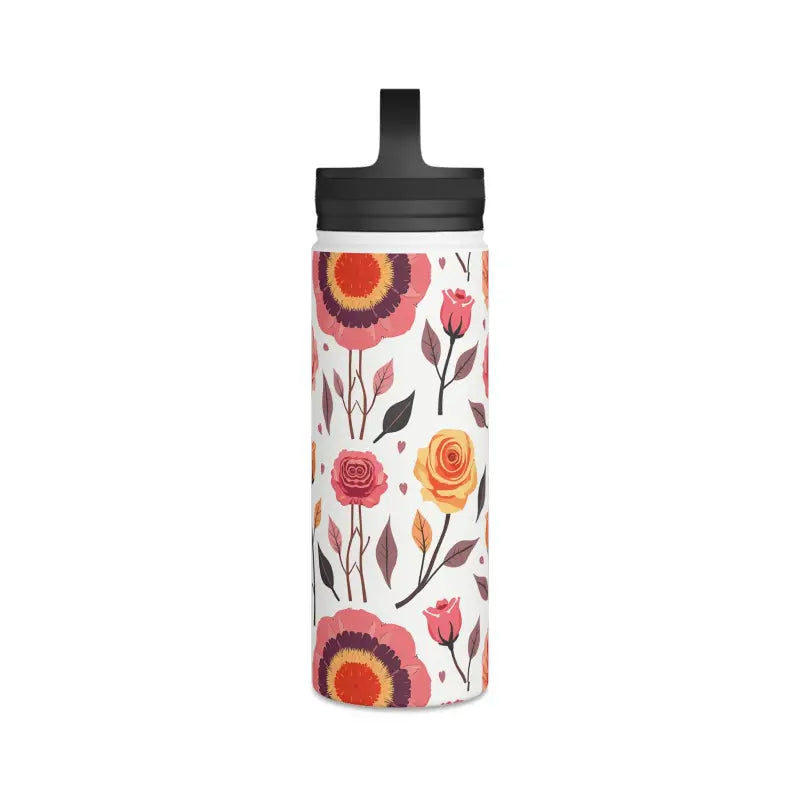 Steel Water Bottle with Floral Rose Handle Lid - DipaliZ