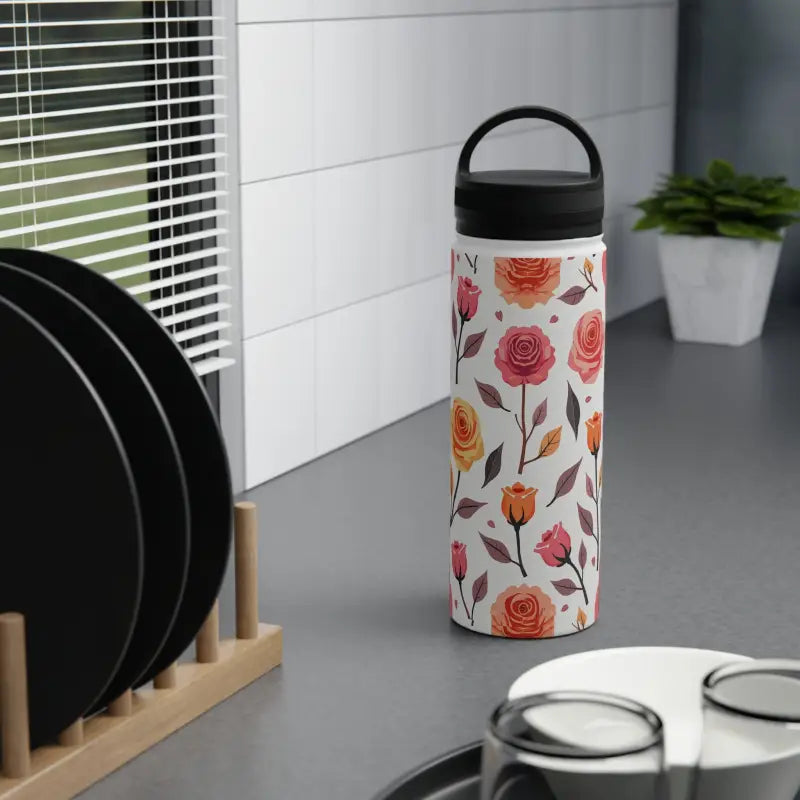 Ditch boring bottles and get noticed every day with a steel water bottle that combines style, function, and pure good taste. Perfect as a statement piece for the woman who loves fashion, this floral rose handle bottle promises lasting freshness, eco-friendliness, and undeniable flair. Make every sip beautiful and shop now!