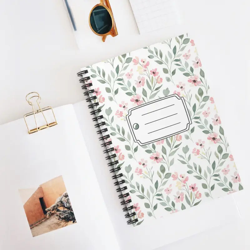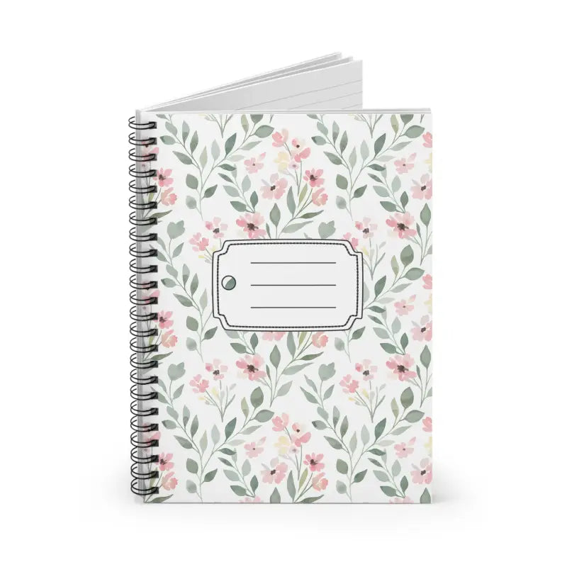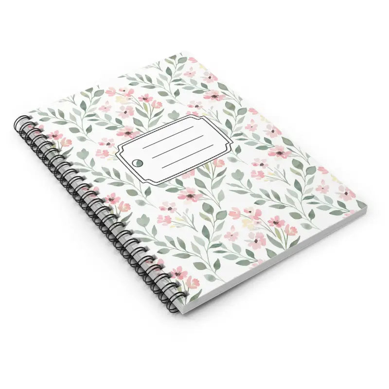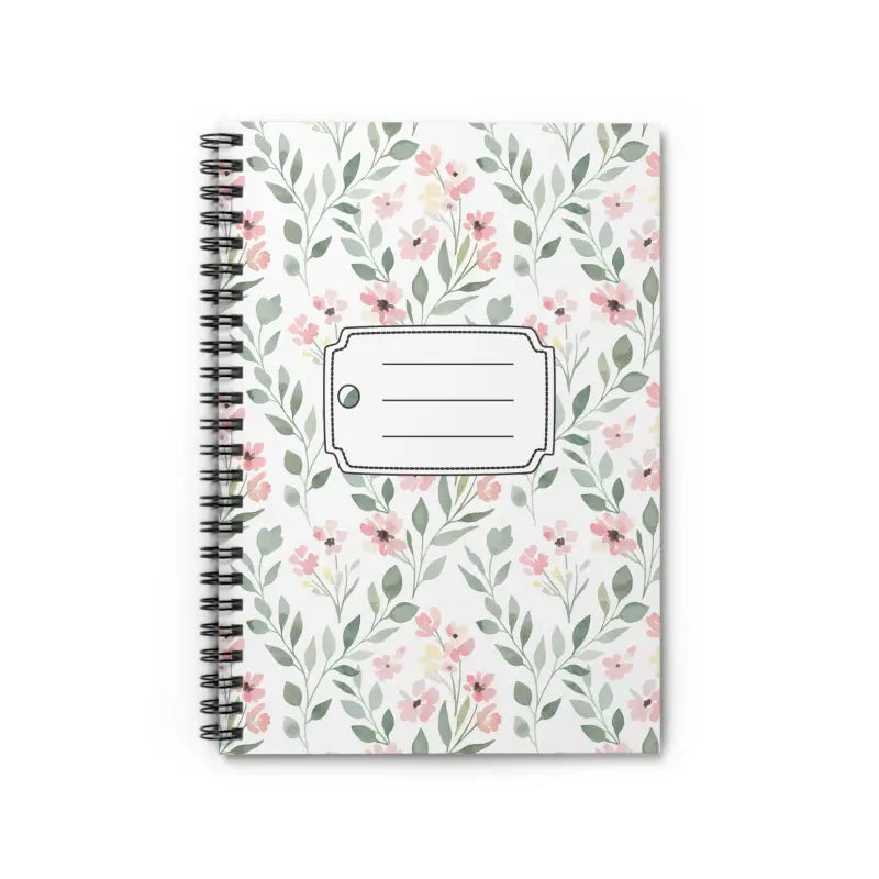 Floral Spiral Notebook - Pink Watercolor Flowers Ruled - DipaliZ