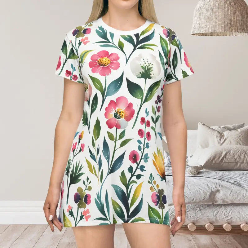 Ready to make every sun-soaked day brighter? Slip into effortless comfort and unleash serious casual summer vibes with this eye-catching Floral T-shirt Dress that turns laid-back looks into instant style.