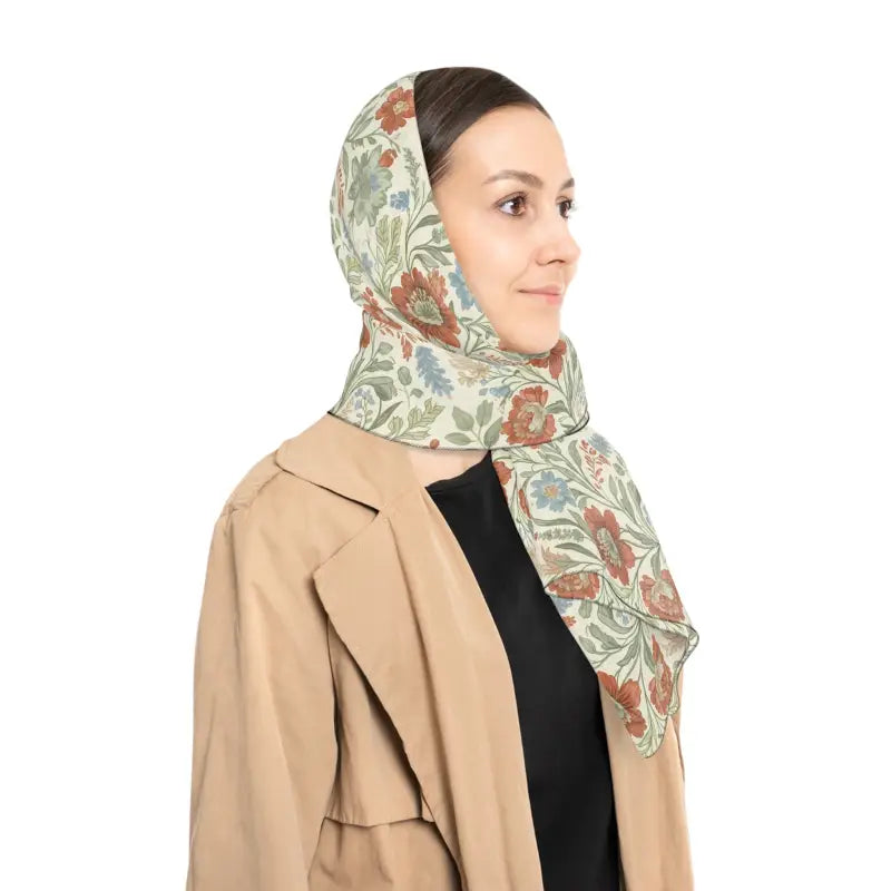 Picture this: you're rushing out the door on a cool morning, and you reach for that one accessory that instantly transforms your entire look from basic to breathtaking. The moment this floral vintage scarf touches your shoulders, you feel that whisper-soft fabric glide against your skin like a gentle breeze carrying the scent of a secret garden. This isn't just another scarf—it's your secret weapon for turning ordinary moments into occasions worth remembering. The soft botanical print features delicate trailing vines and repeat flowers in a dreamy palette of muted greens, terracotta, and pale blue that feels like stepping into a sun-drenched conservatory where time moves just a little bit slower. Every time you drape it around your neck or let it cascade over your shoulders, you're wrapping yourself in that quietly nostalgic mood that makes people stop and ask where you found such a beautiful piece.