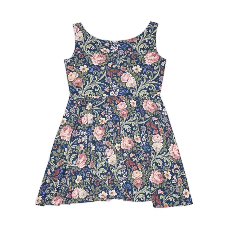 Floral Vintage Vine Skater Dress Navy Tapestry Print DipaliZ