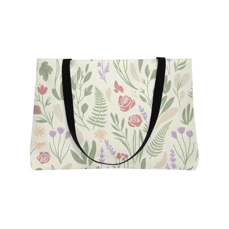 Picture soft greens dancing with dusty pinks and lavender across durable spun polyester that keeps colors vibrant trip after trip. The roomy interior swallows weekend essentials while the clever T-bottom structure prevents that annoying slouch. Black woven handles feel amazing on your shoulder whether you're hitting the farmers market or escaping for a lakeside weekend.
