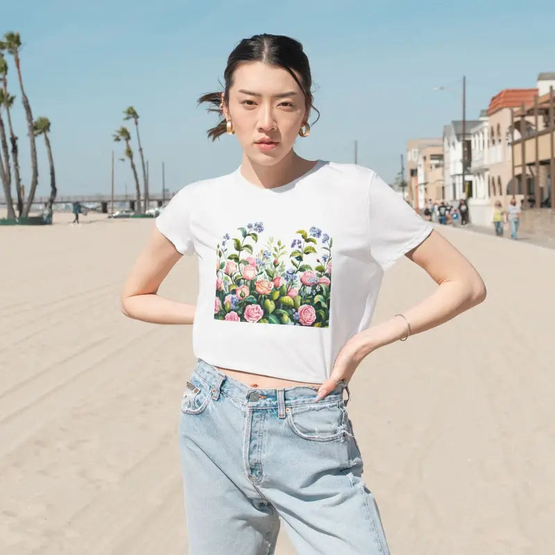 Flowy Cropped Tee for Garden Lovers Bold Summer Style - DipaliZ
